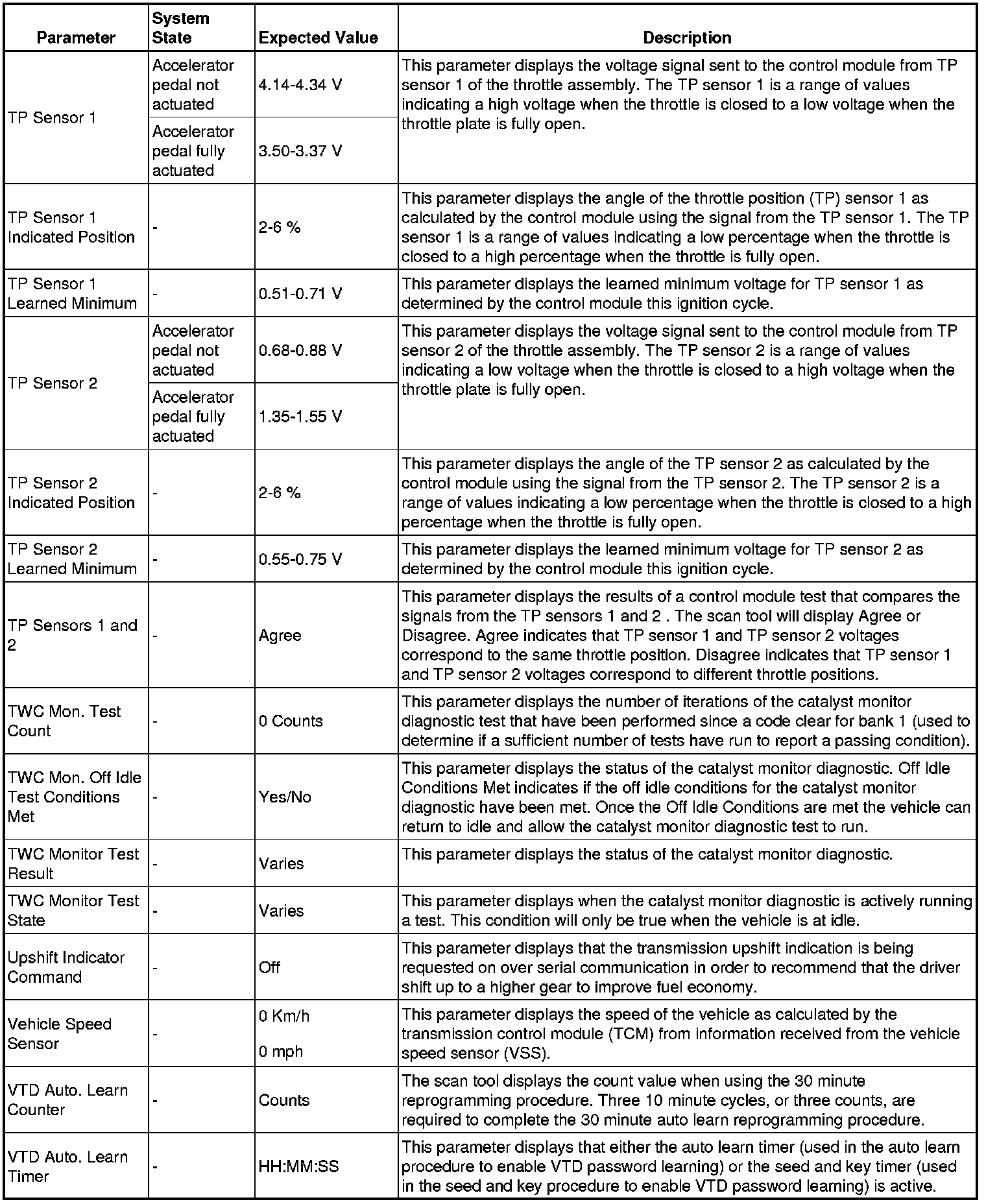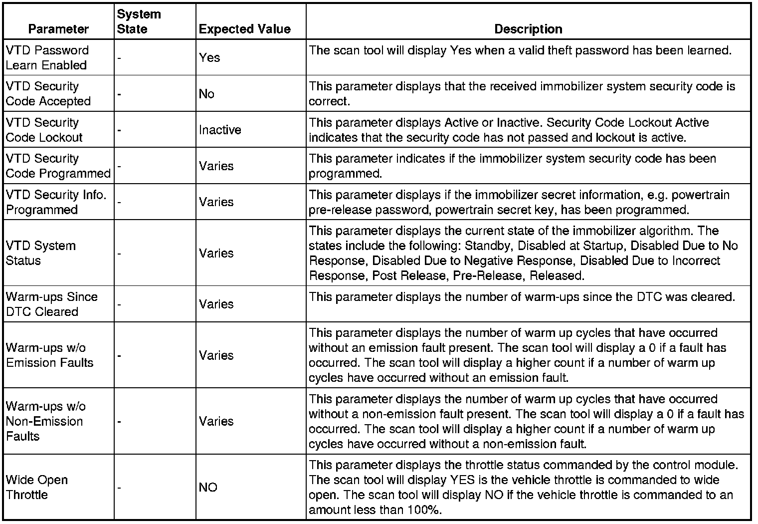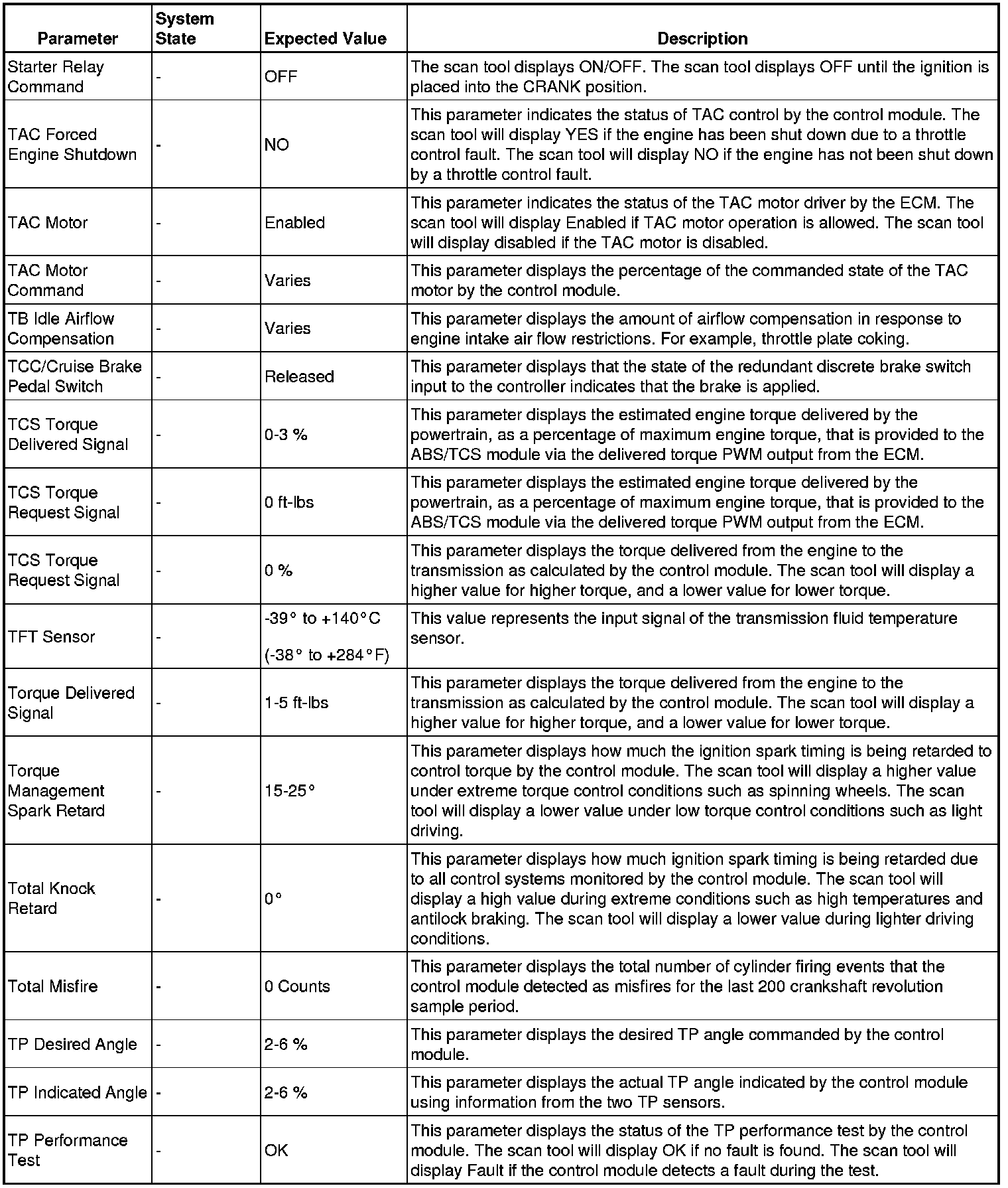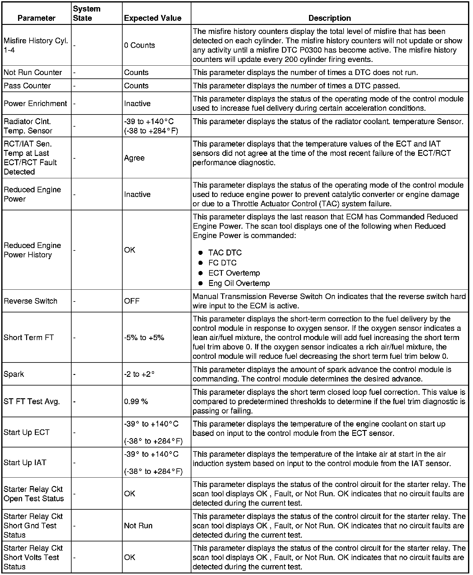 Only the parameters listed below are referenced in this service manual for use in diagnosis.