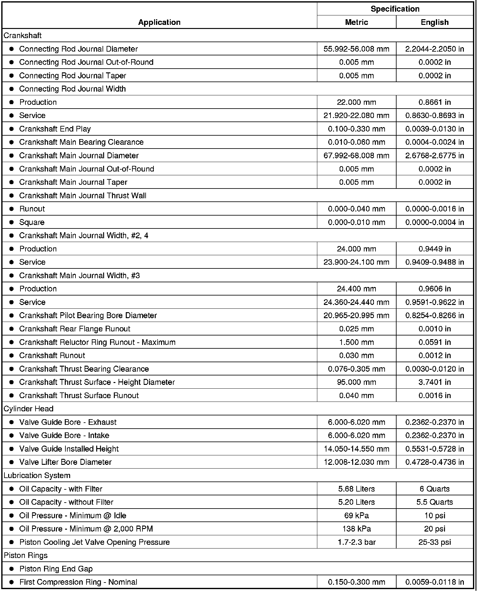 Engine Mechanical Specifications (LLT)