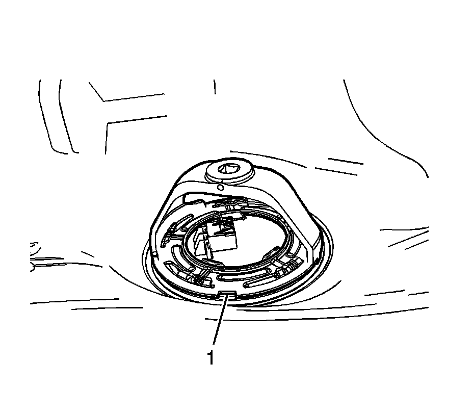 2. Partially install the secondary fuel pump module in order to connect the fuel transfer hose quick connect fitting (1). Refer to Plastic Collar Quick Connect Fitting Service (Plastic Collar Quick Connect Fitting Service).