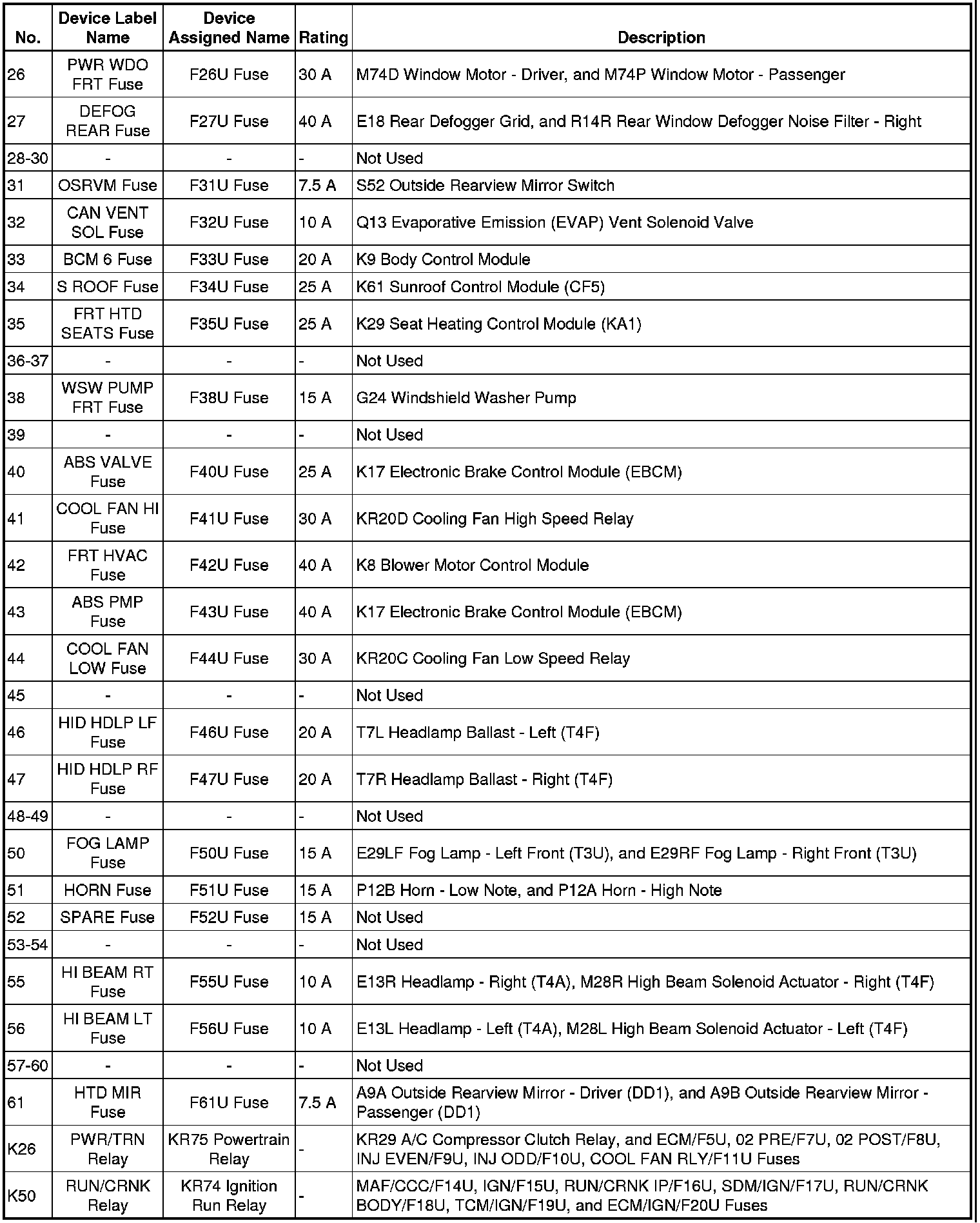 X50A Fuse Block - Underhood Label