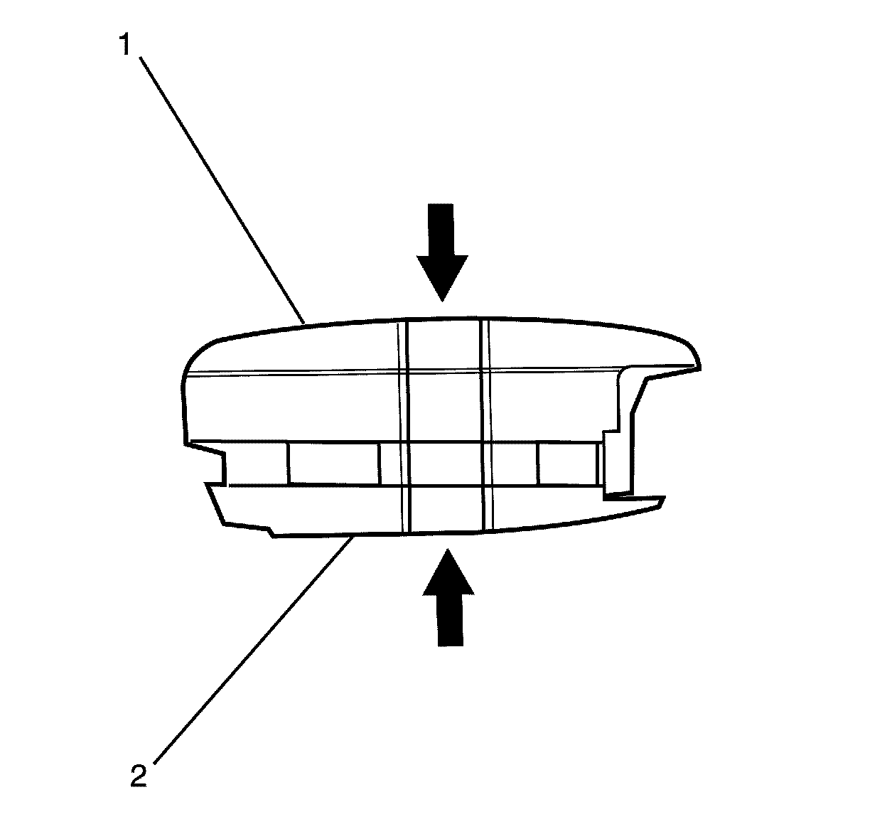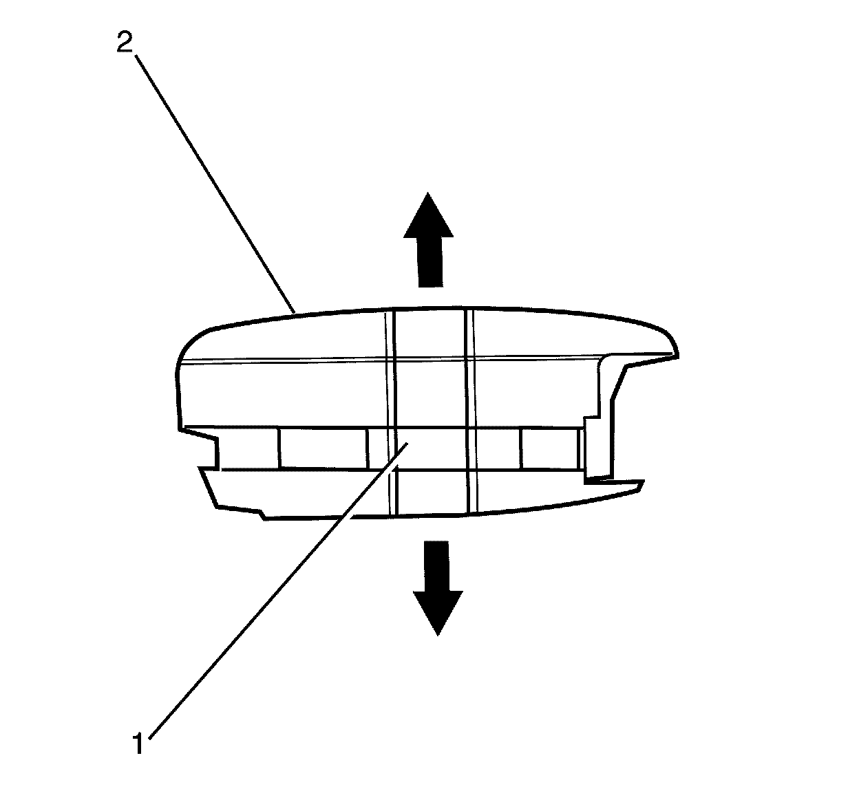 2. Separate the two key halves (1, 2).