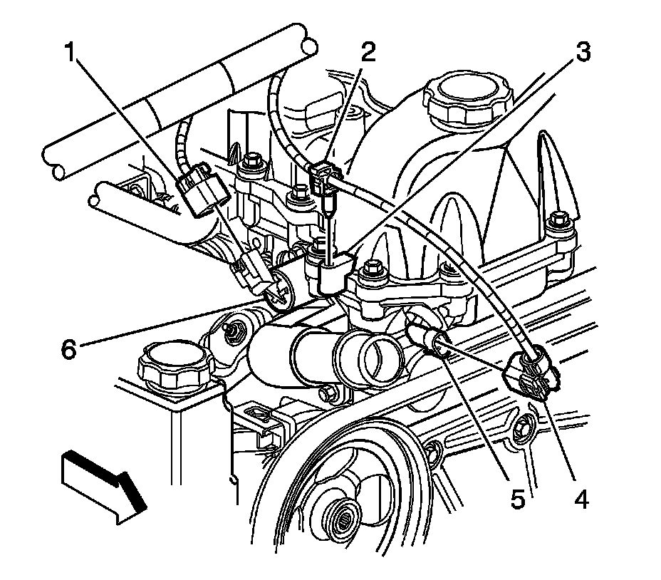1. Disconnect the engine wiring harness electrical connector (4) from the camshaft position (CMP) sensor (5).