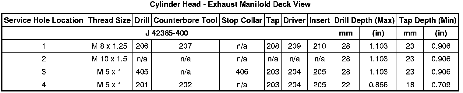 Home >> Chevrolet >> 2011 >> Colorado 2WD L4-2.9L >> Repair and Diagnosis >> Specifications >> Mechanical Specifications >> Engine >> System Specifications >> Thread Repair Specifications