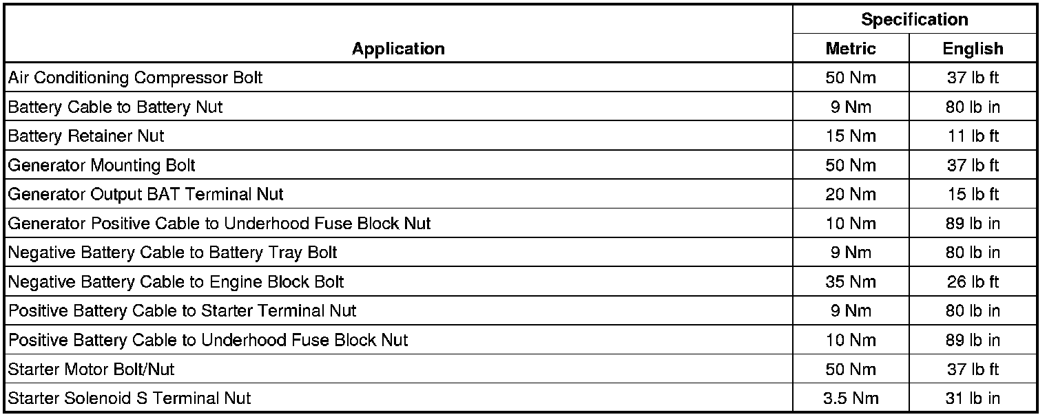 Starting and Charging: Specifications