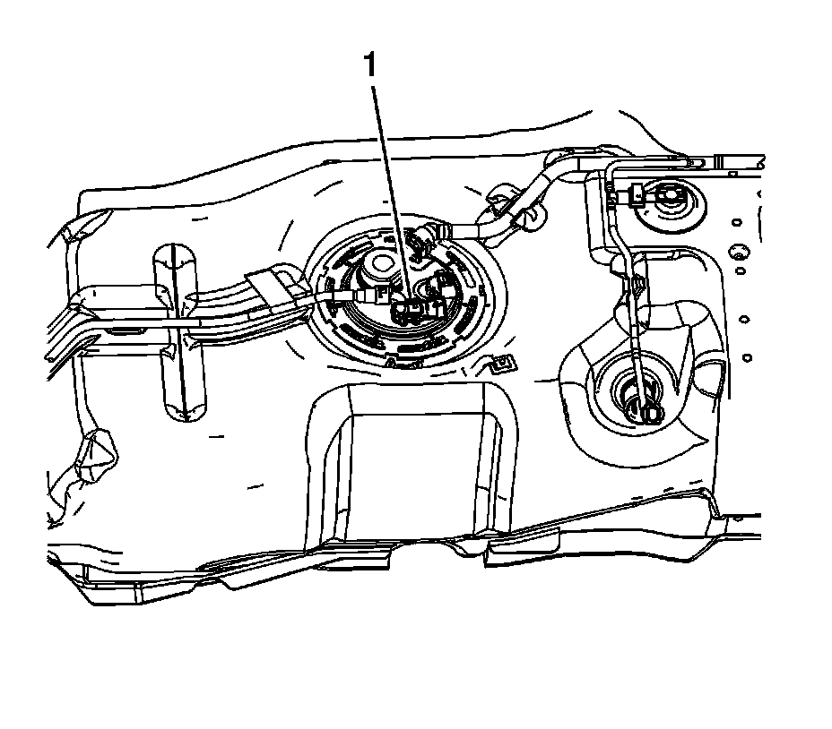 4. Disconnect the chassis wiring harness electrical connector from the fuel tank pressure sensor (1).