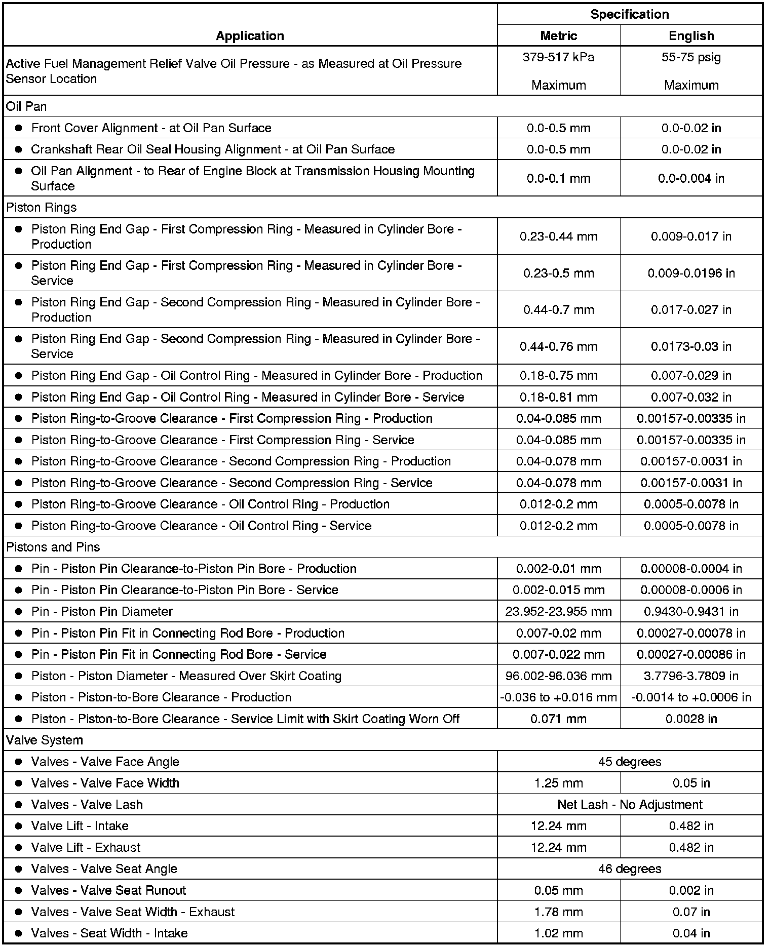 Engine Mechanical Specifications
