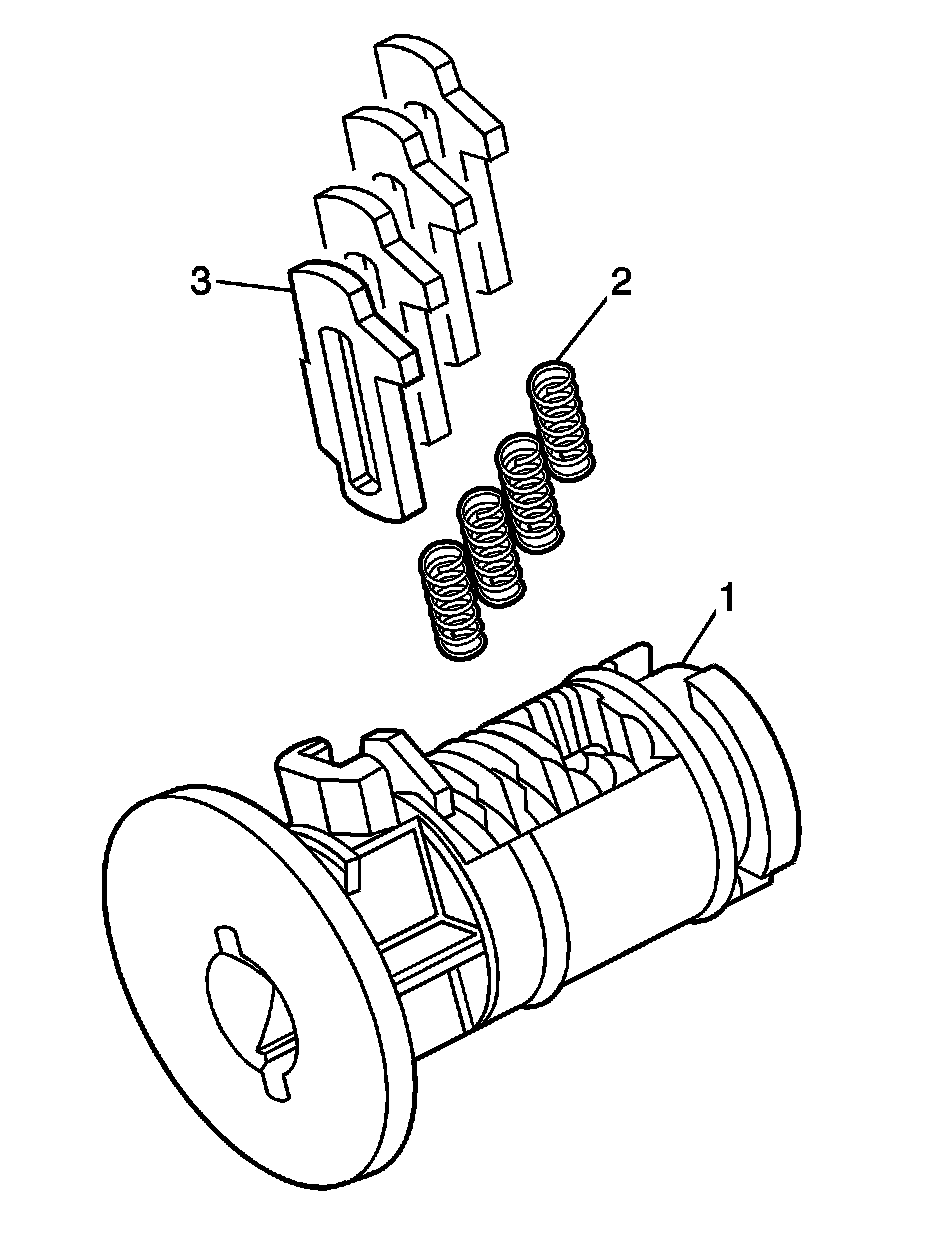 3. Install the first tumbler (3) for key cut position 7 in the slot nearest to the front of the lock cylinder. Install the remaining tumblers following the key code.