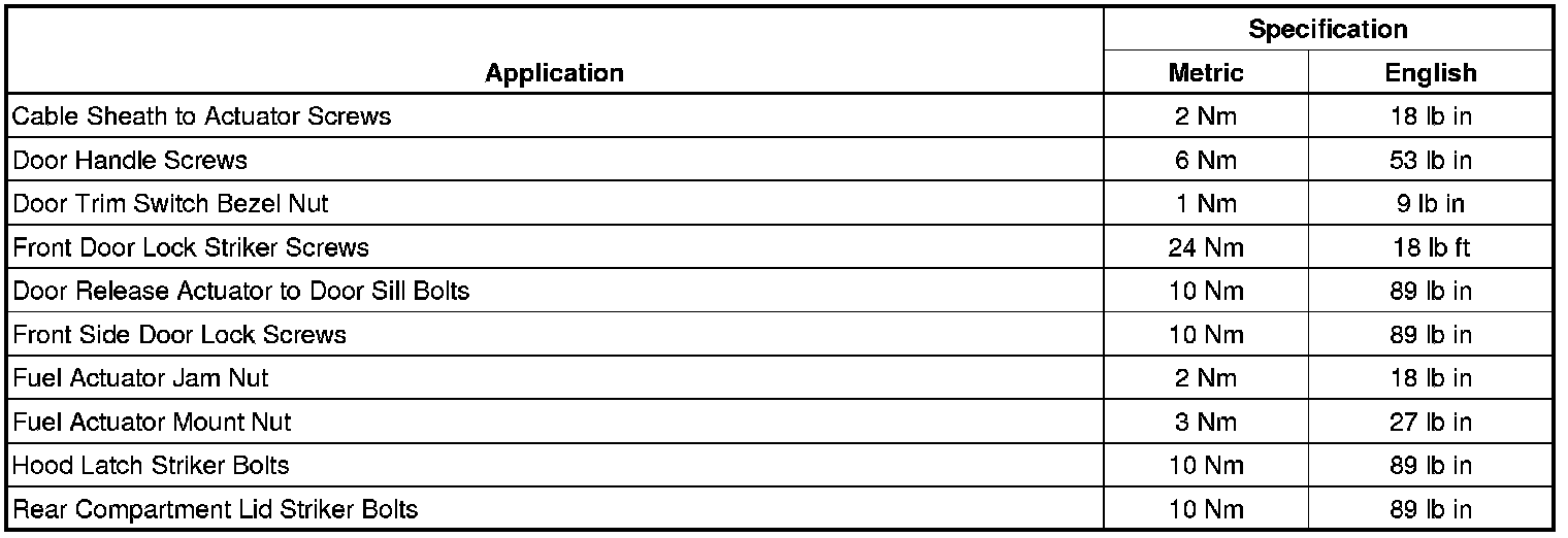Fastener Tightening Specifications
