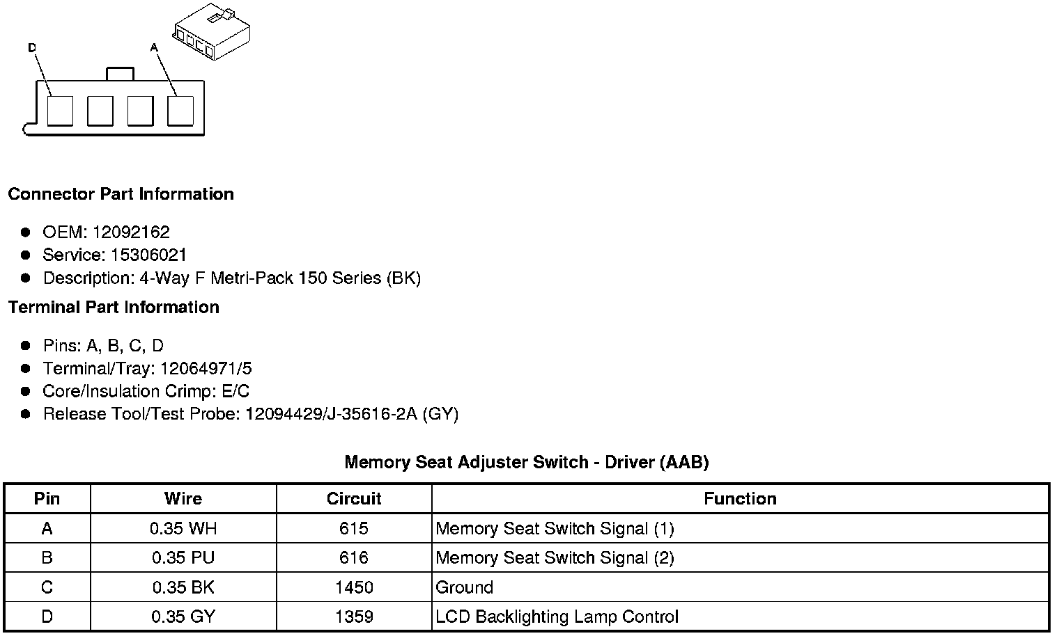 Memory Seat Adjuster Switch - Driver (AAB)