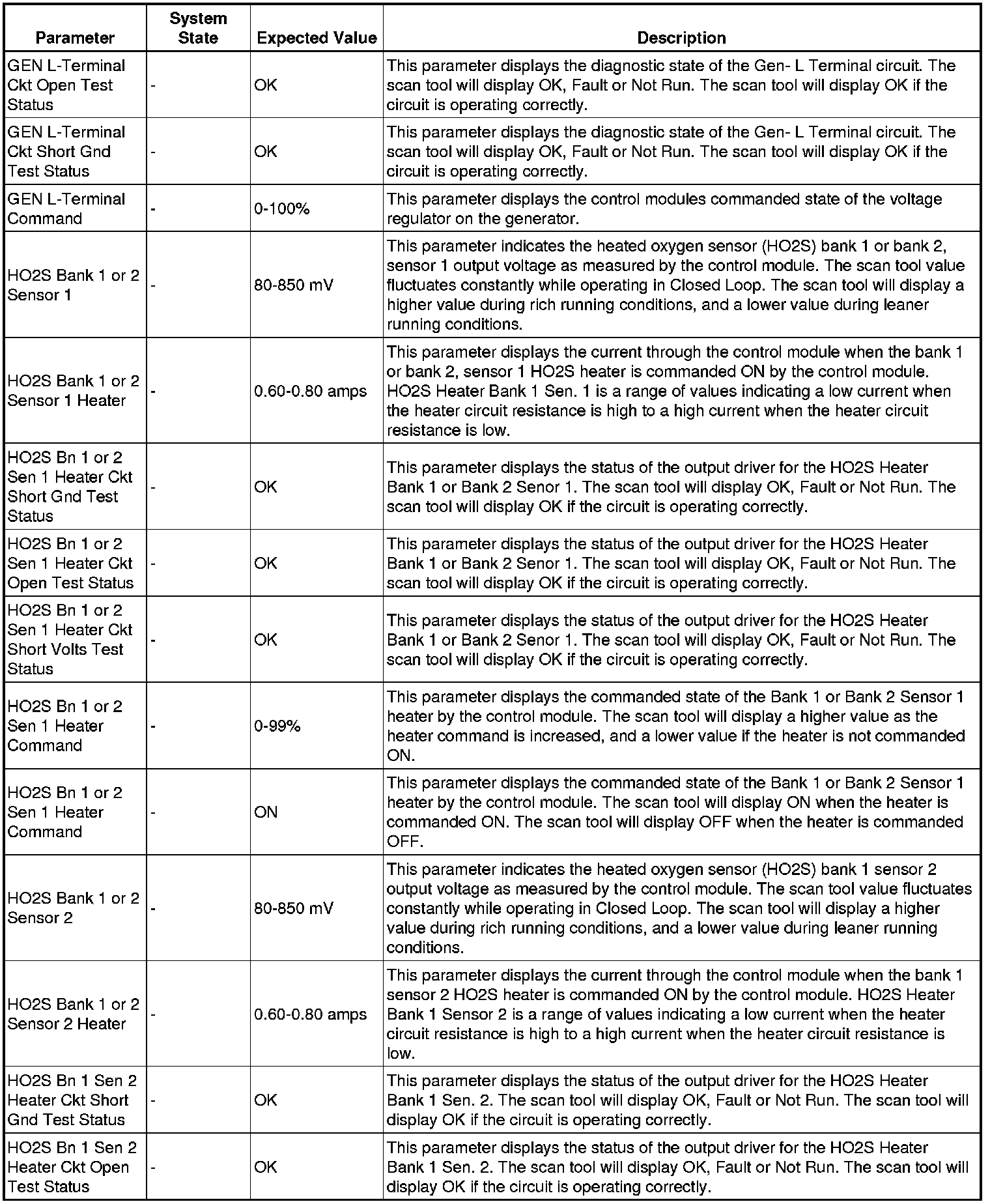 The scan tool values from a properly running engine may be used for comparison with the engine you are diagnosing. The engine scan tool data list represents values that would be seen on a normally running engine.