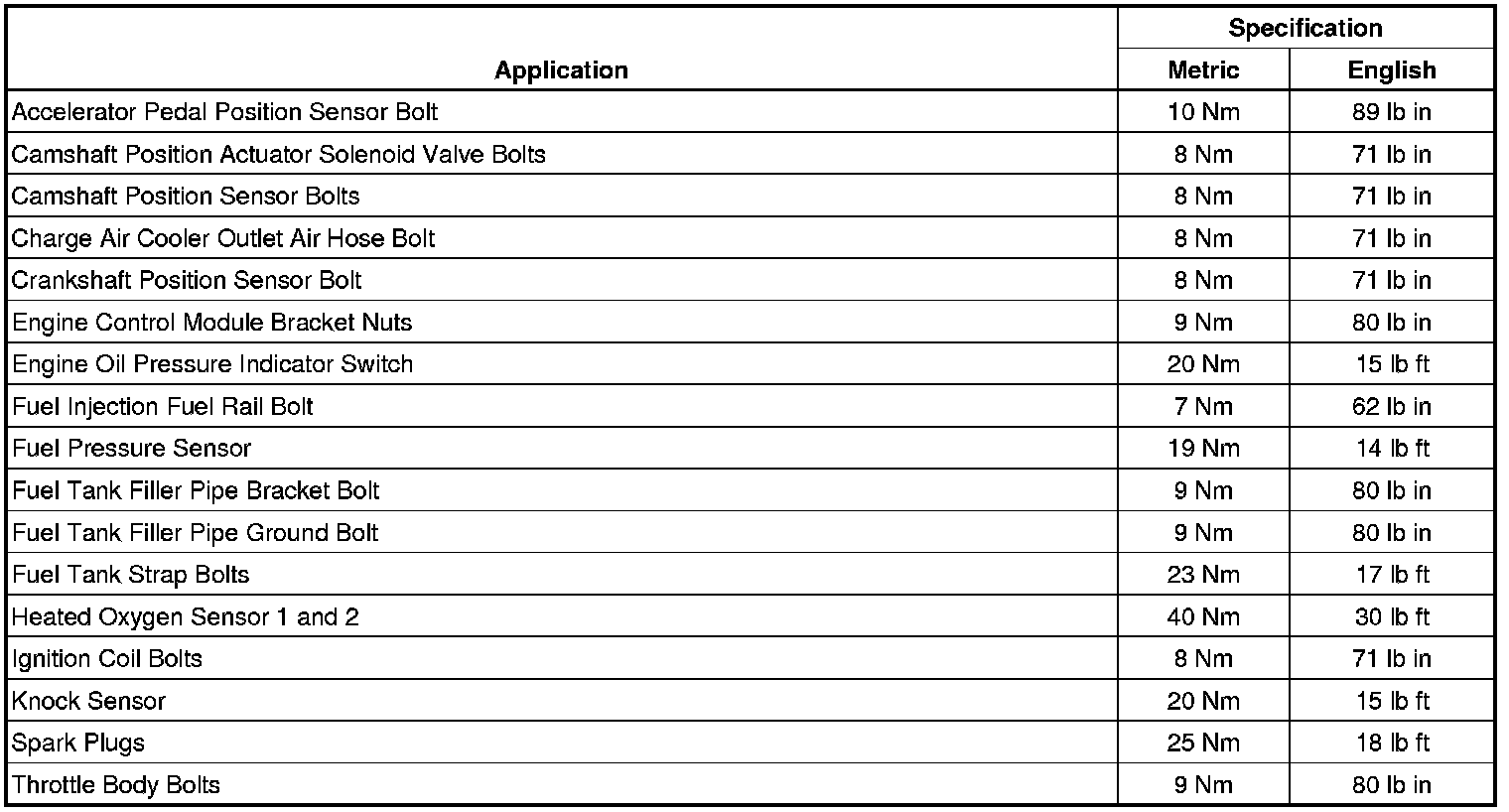 Fastener Tightening Specifications