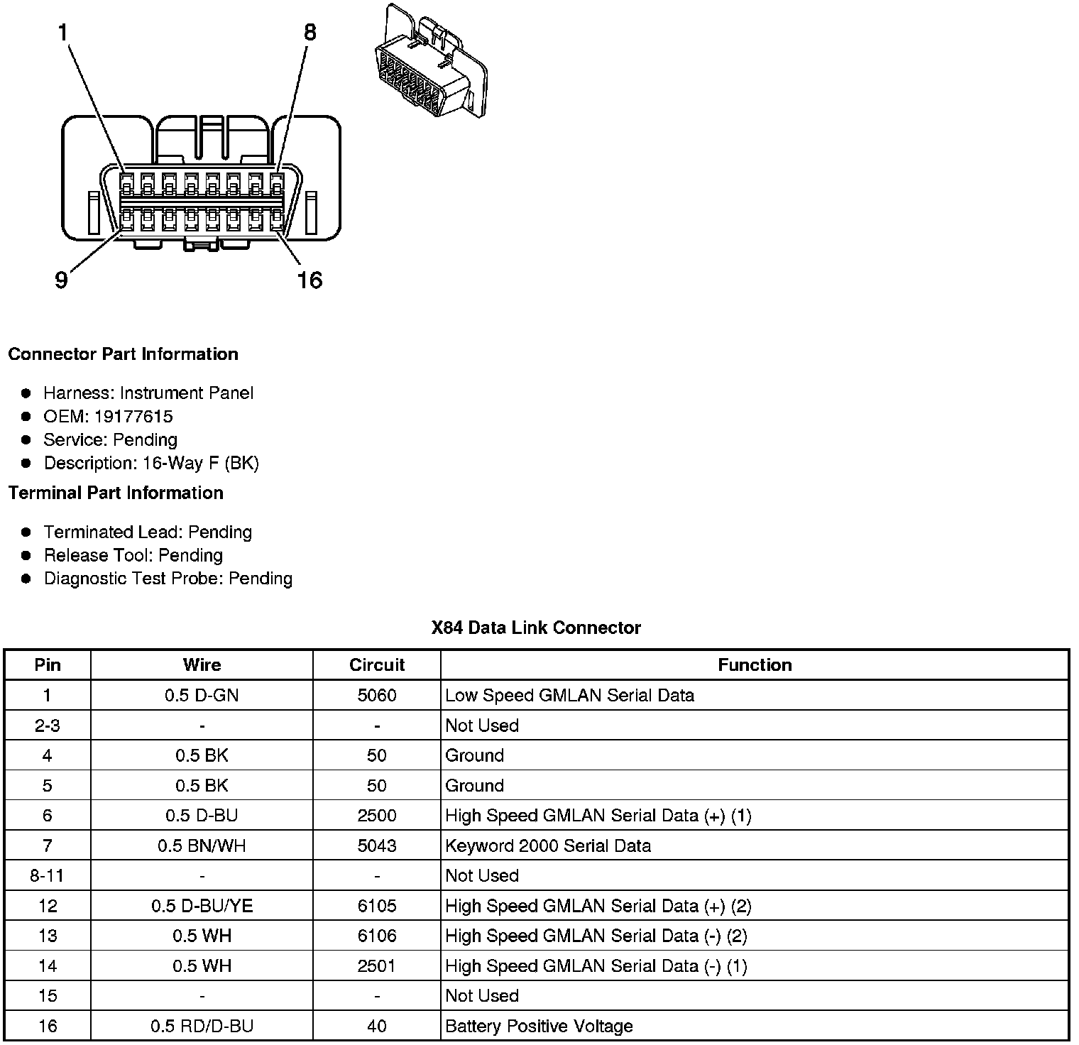 Data Link Connector: Diagrams