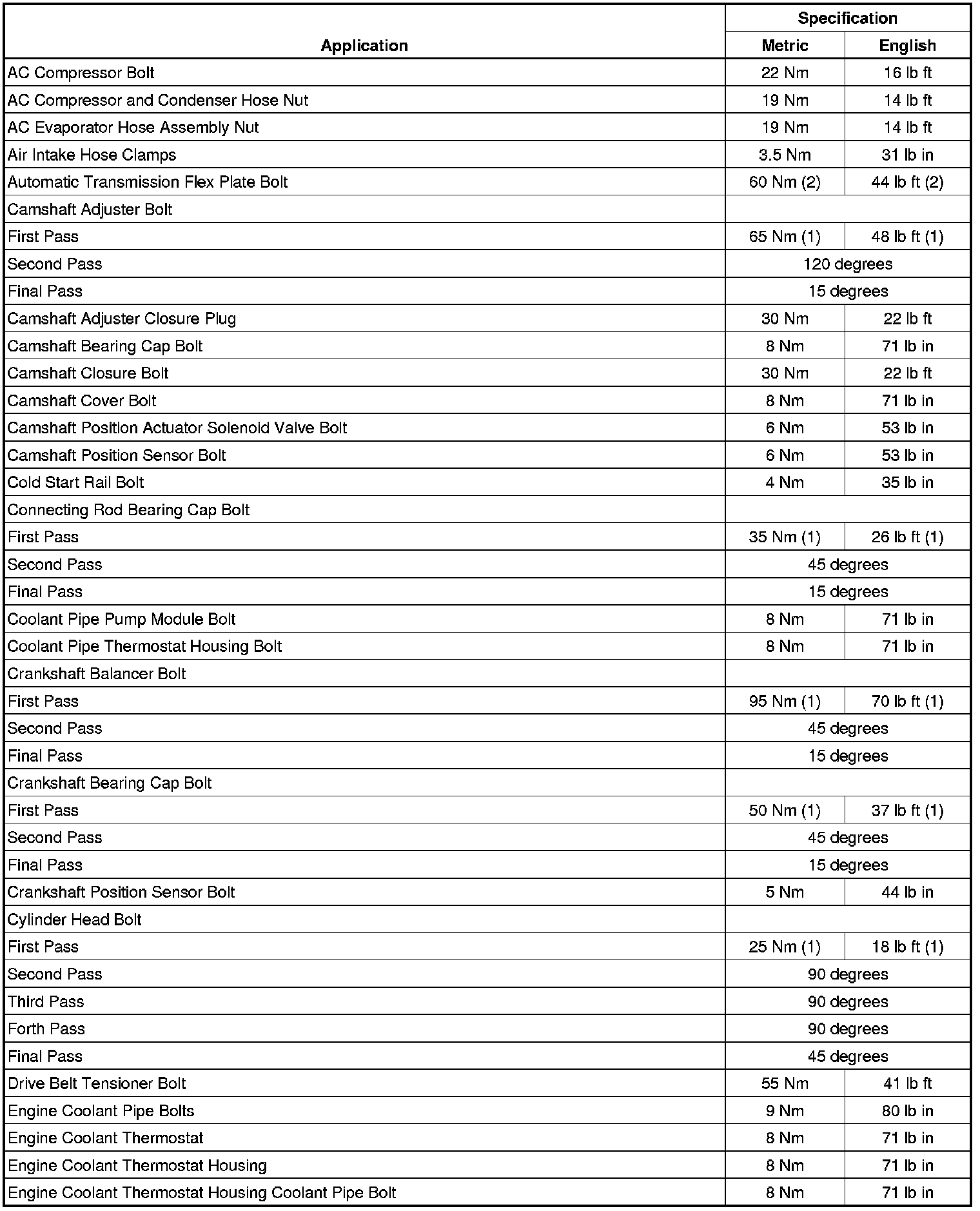 Fastener Tightening Specifications