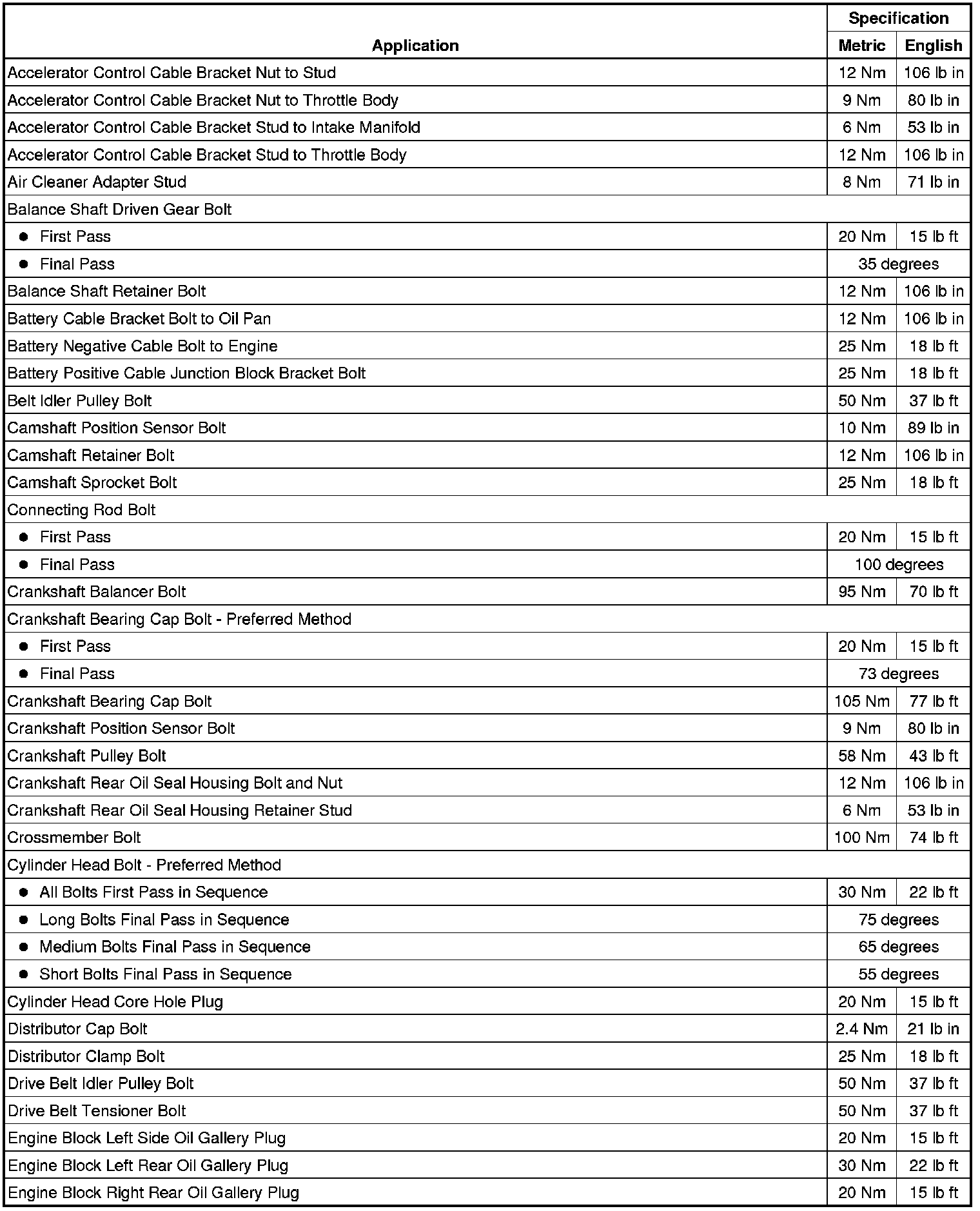 Fastener Tightening Specifications