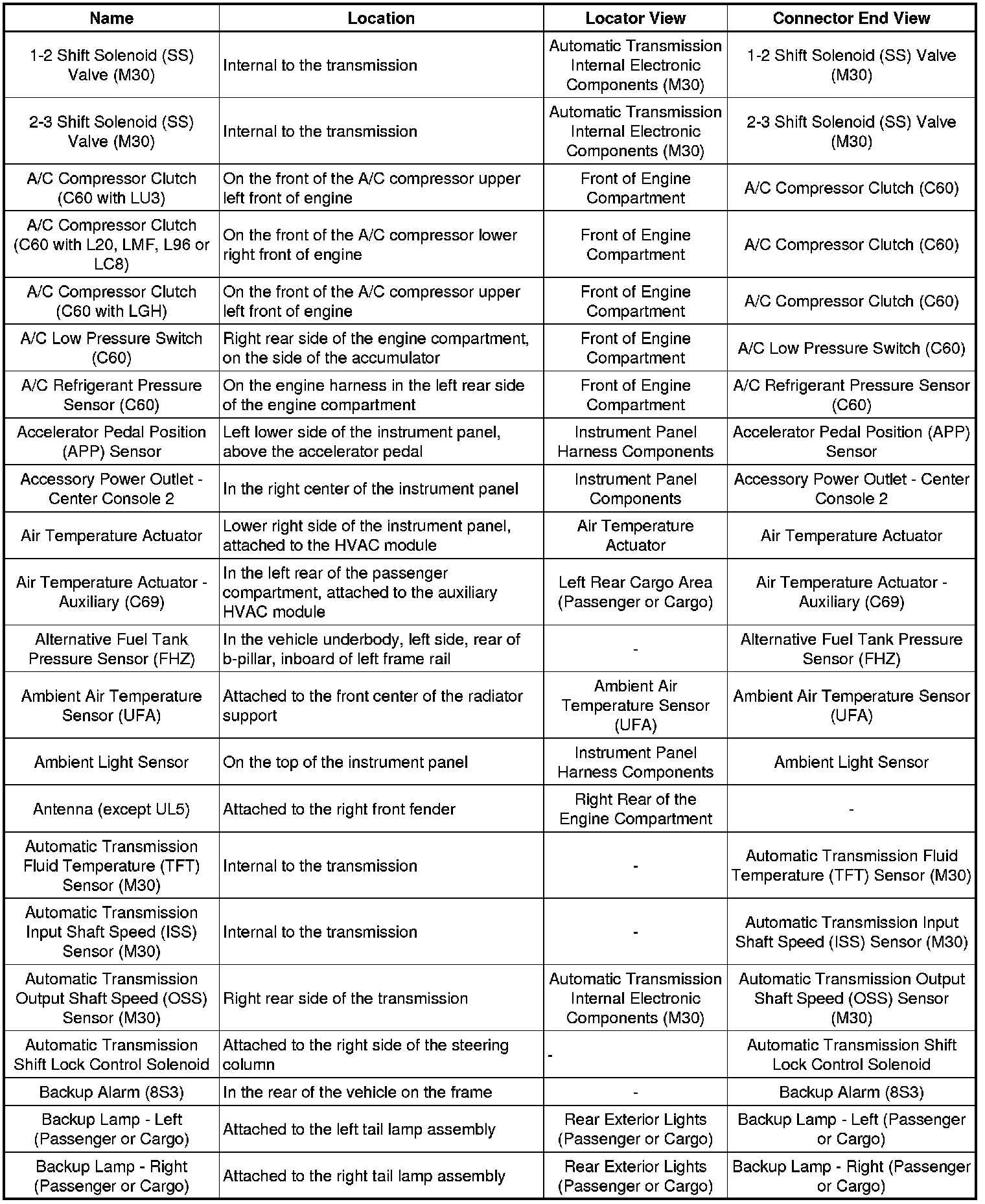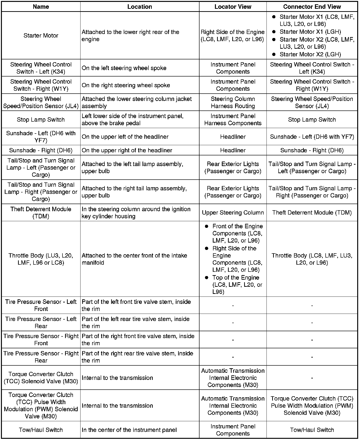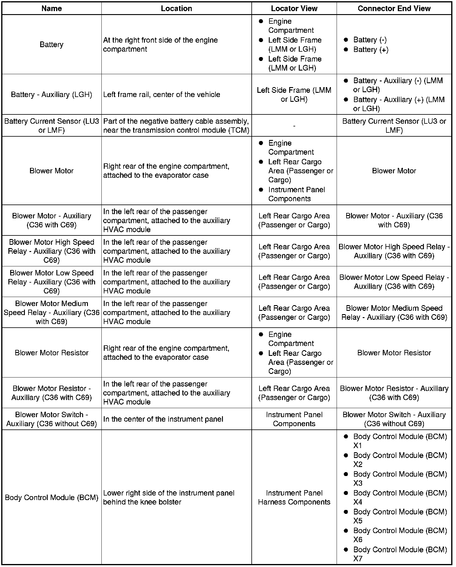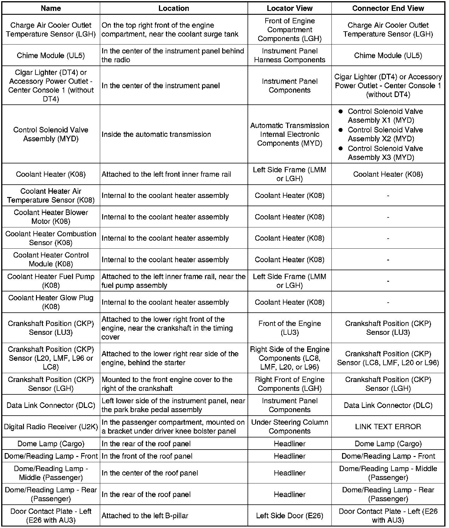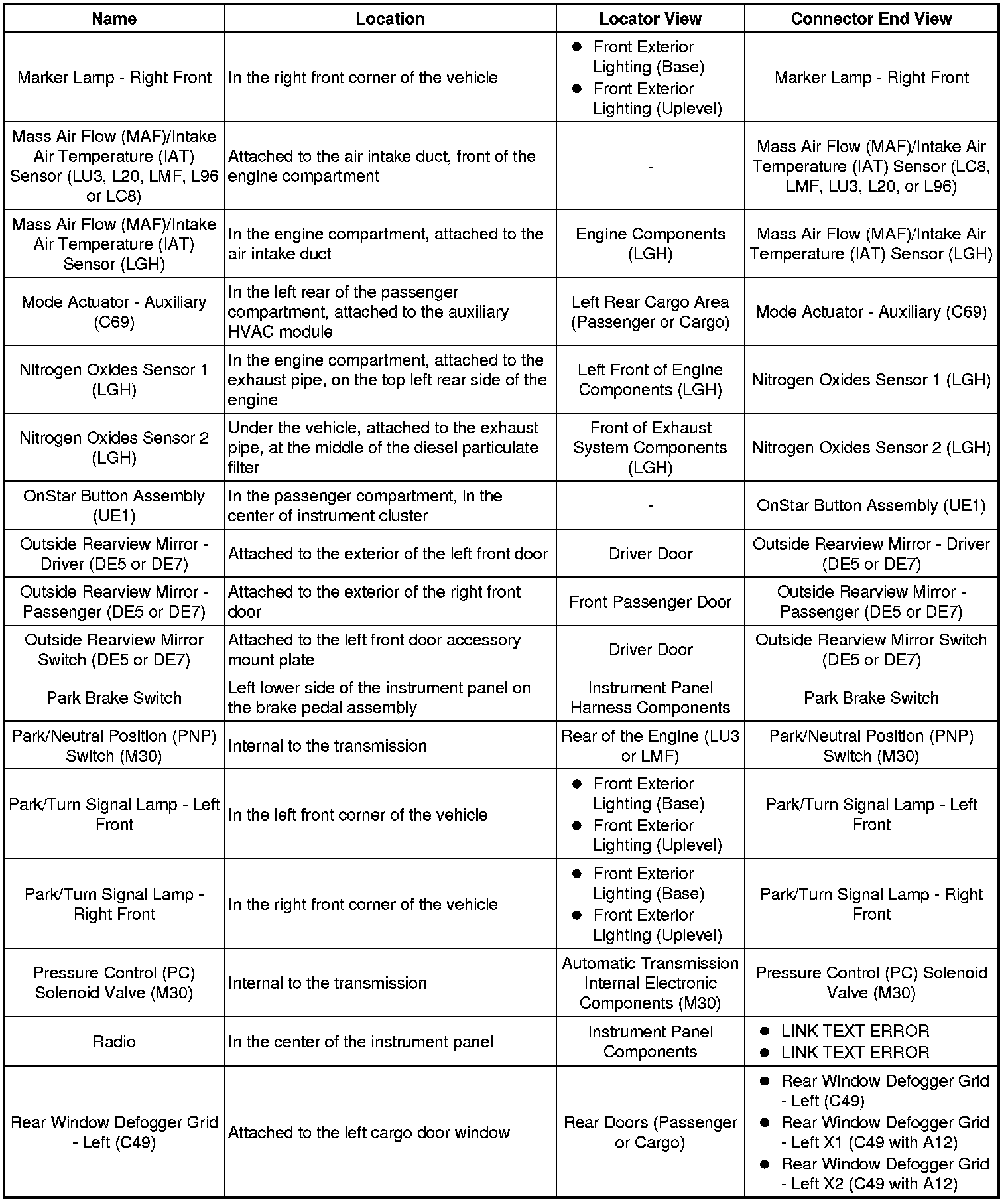 Master Electrical Component List