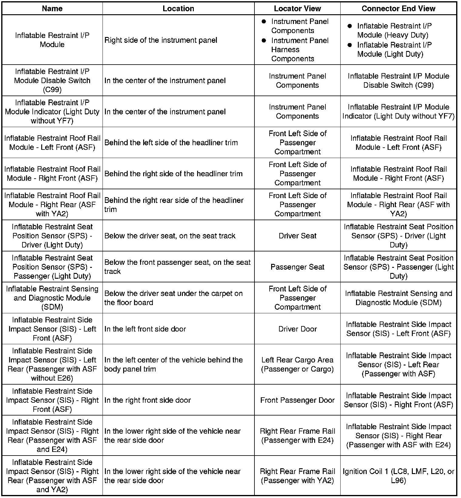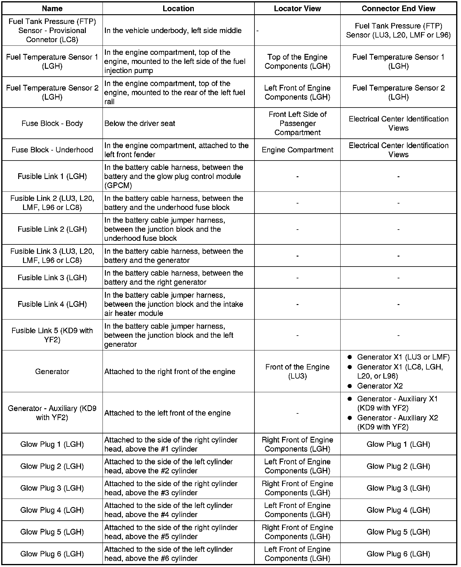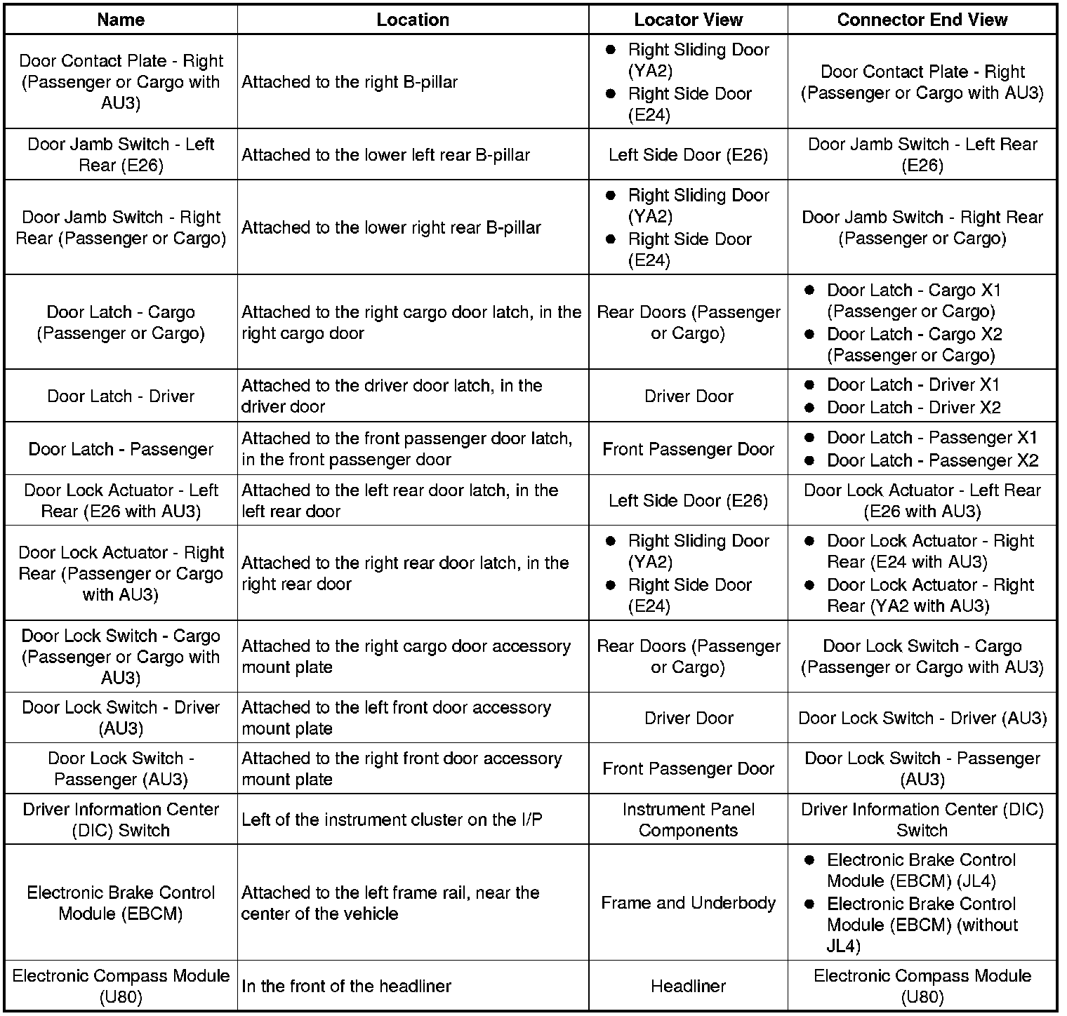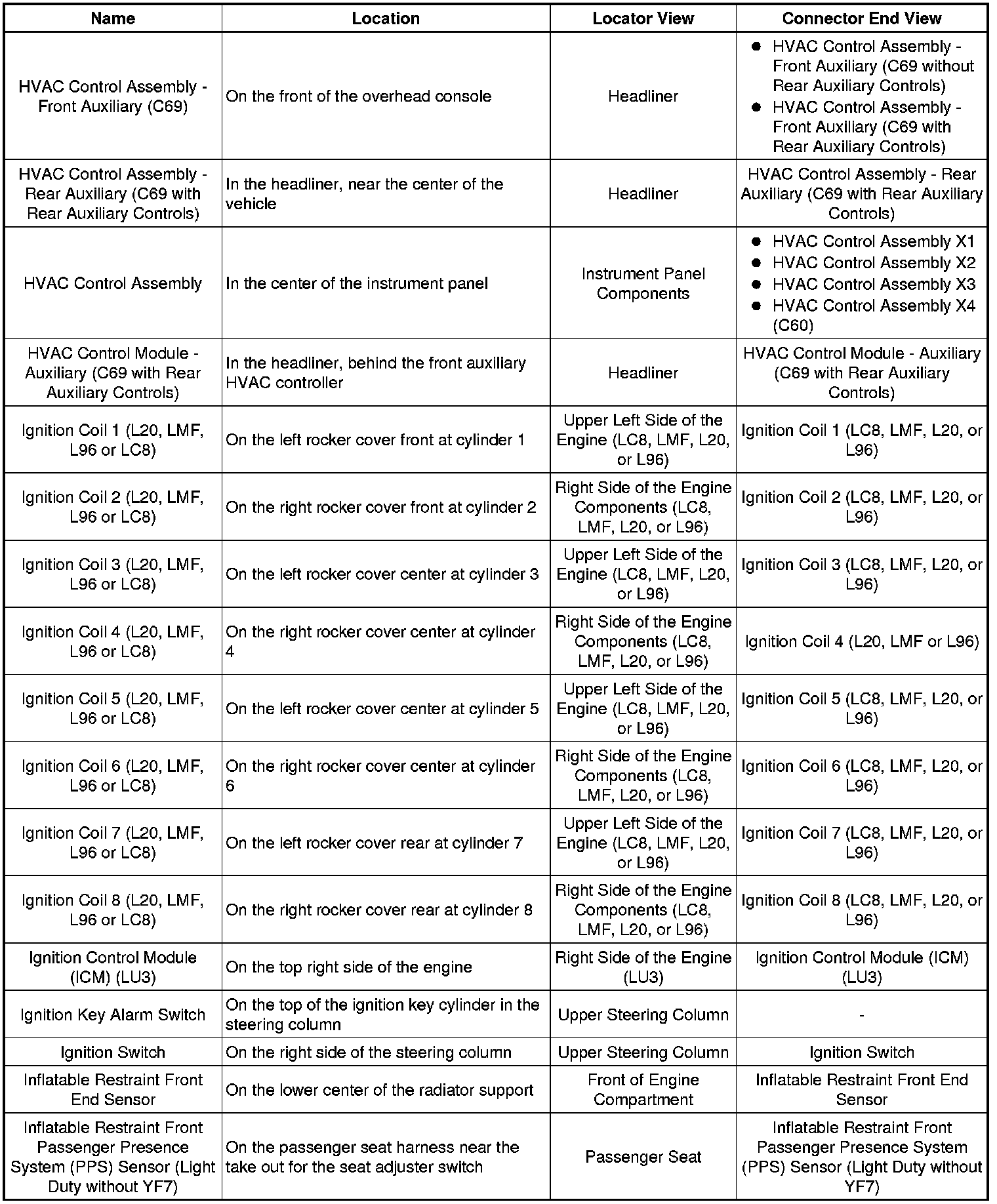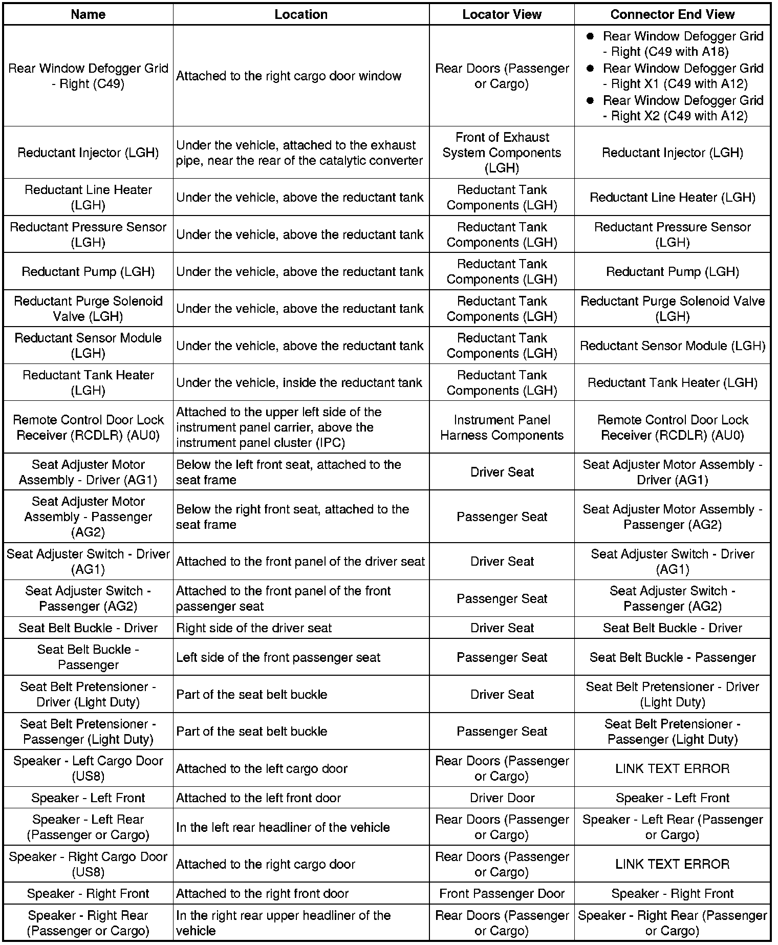 Master Electrical Component List