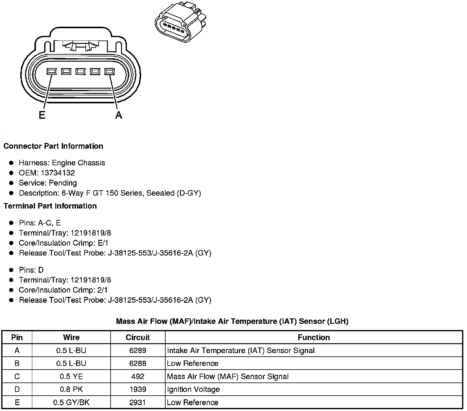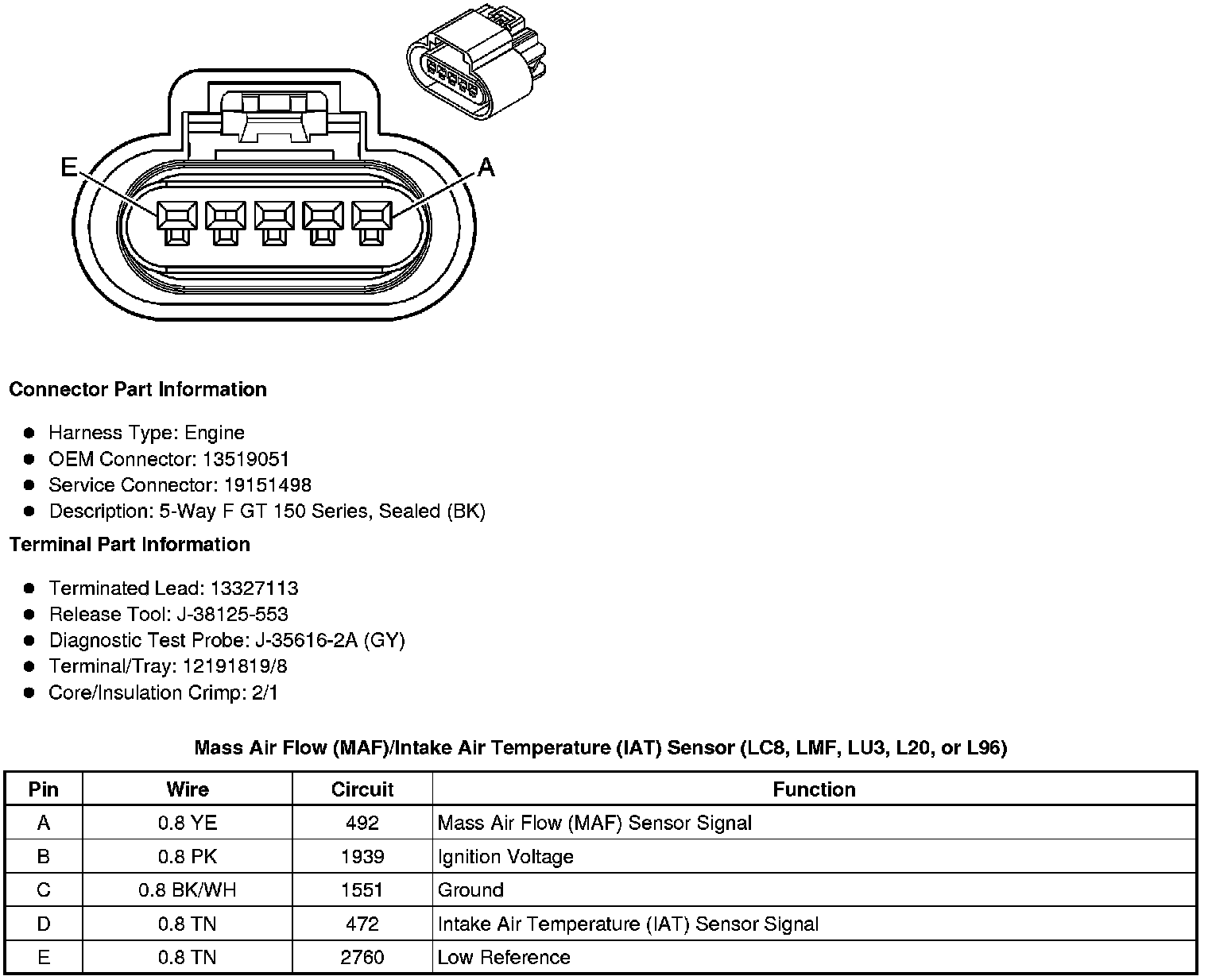 Mass Air Flow (MAF)/Intake Air Temperature (IAT) Sensor (LC8, LMF, LU3, L20, or L96)