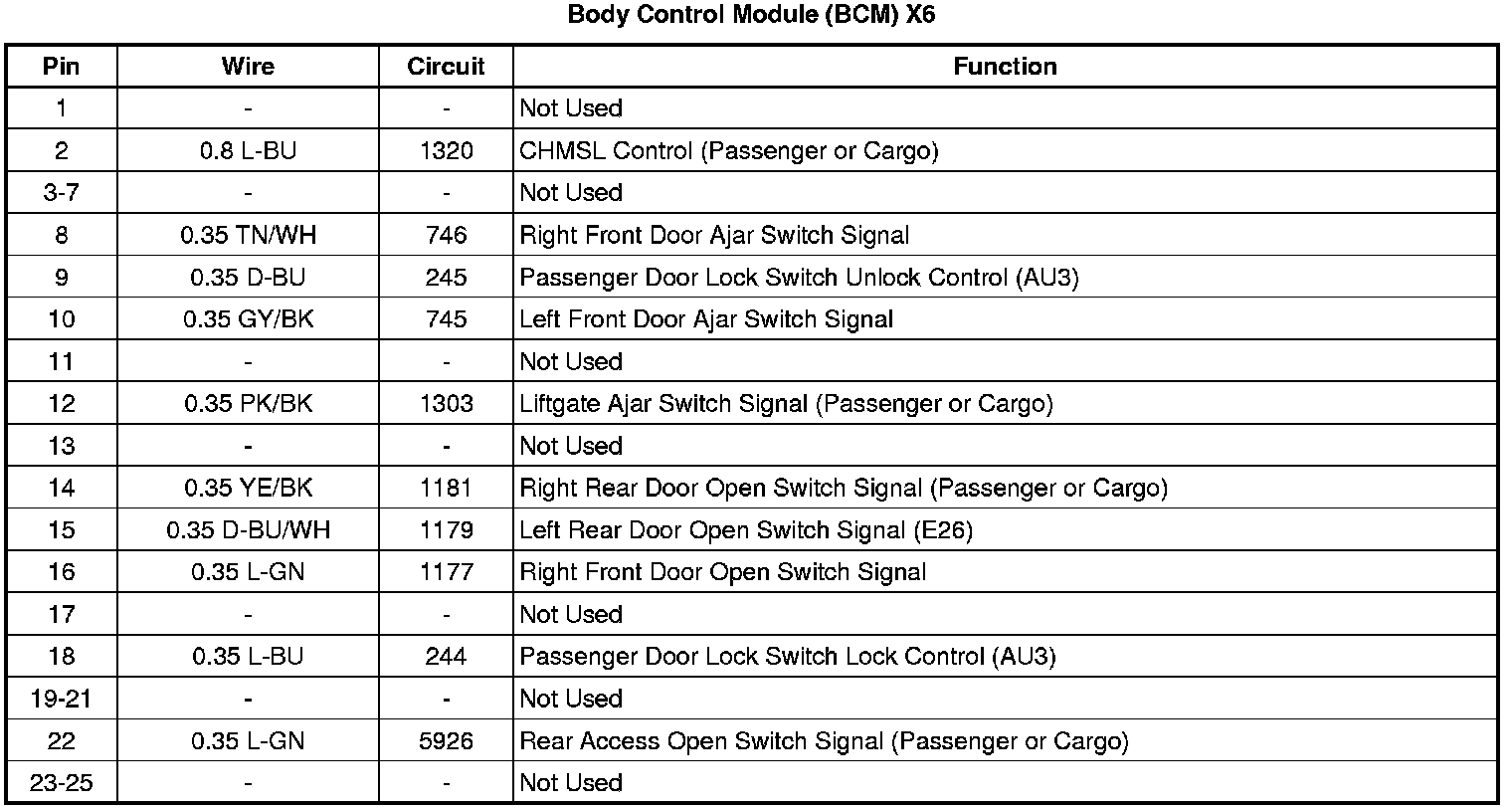 Home >> Chevrolet >> 2011 >> Express 2500 V8-4.8L >> Repair and Diagnosis >> Diagrams >> Connector Views >> Body Control Module