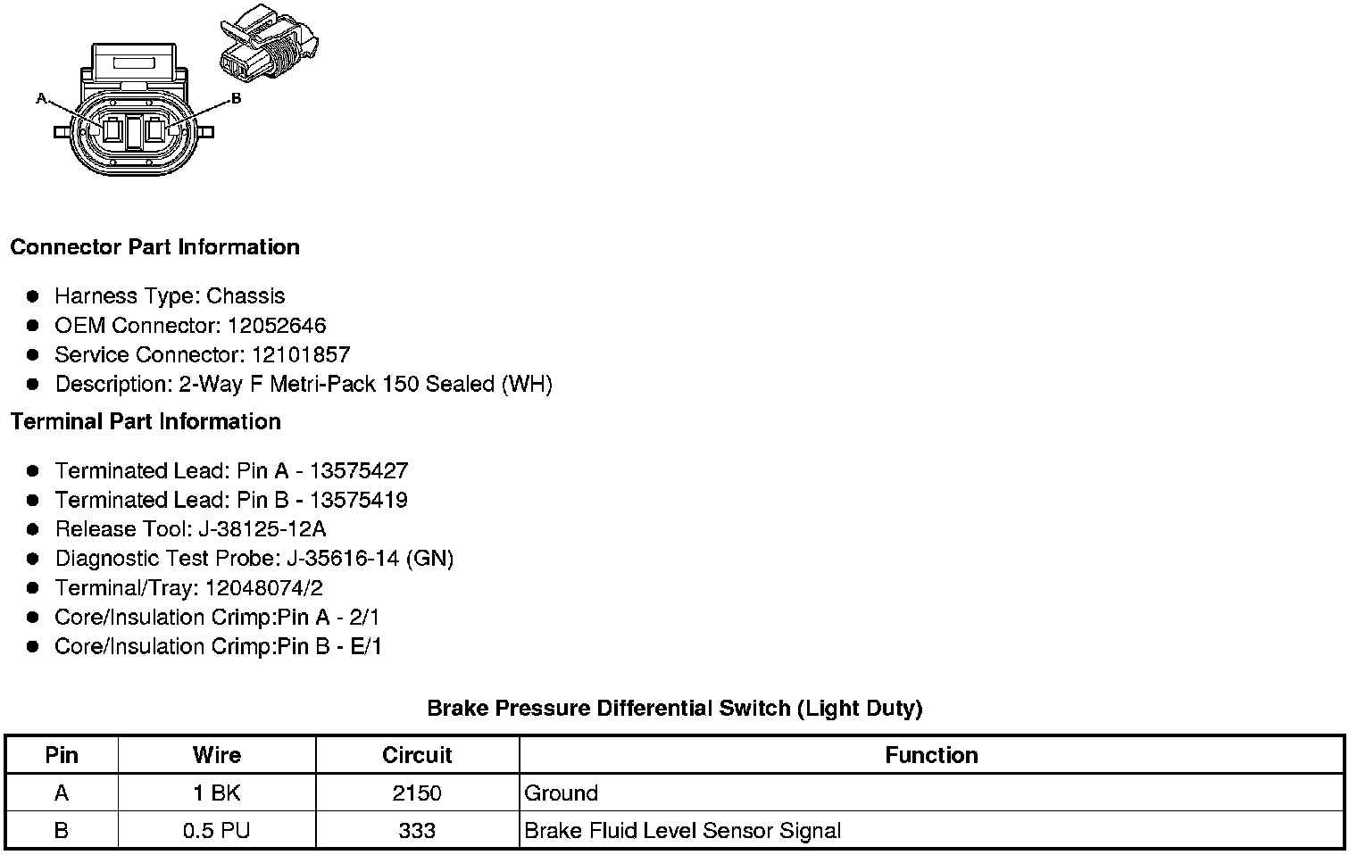 Brake Pressure Differential Switch (Light Duty)