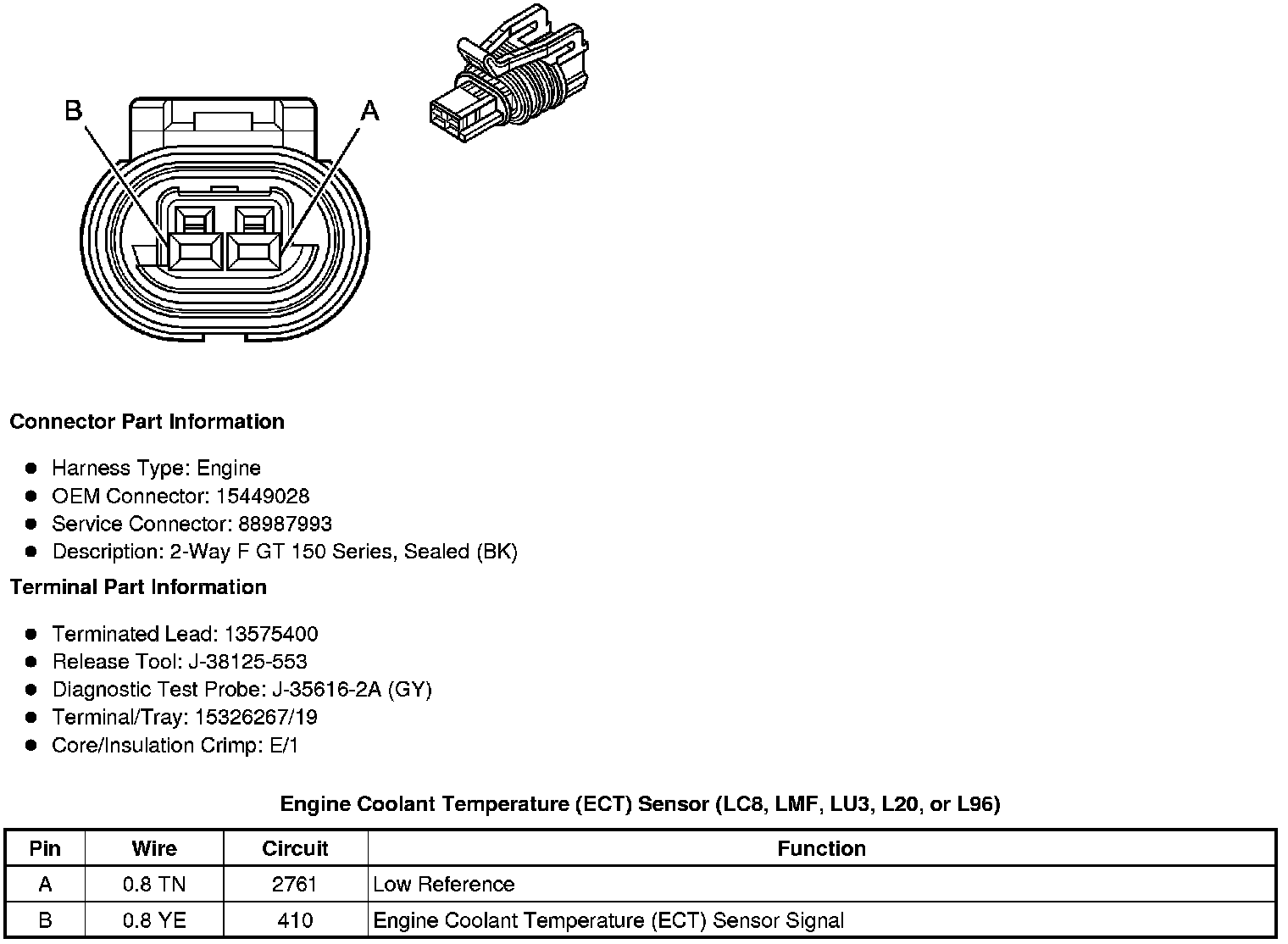 Engine Coolant Temperature (ECT) Sensor (LC8, LMF, LU3, L20, or L96)