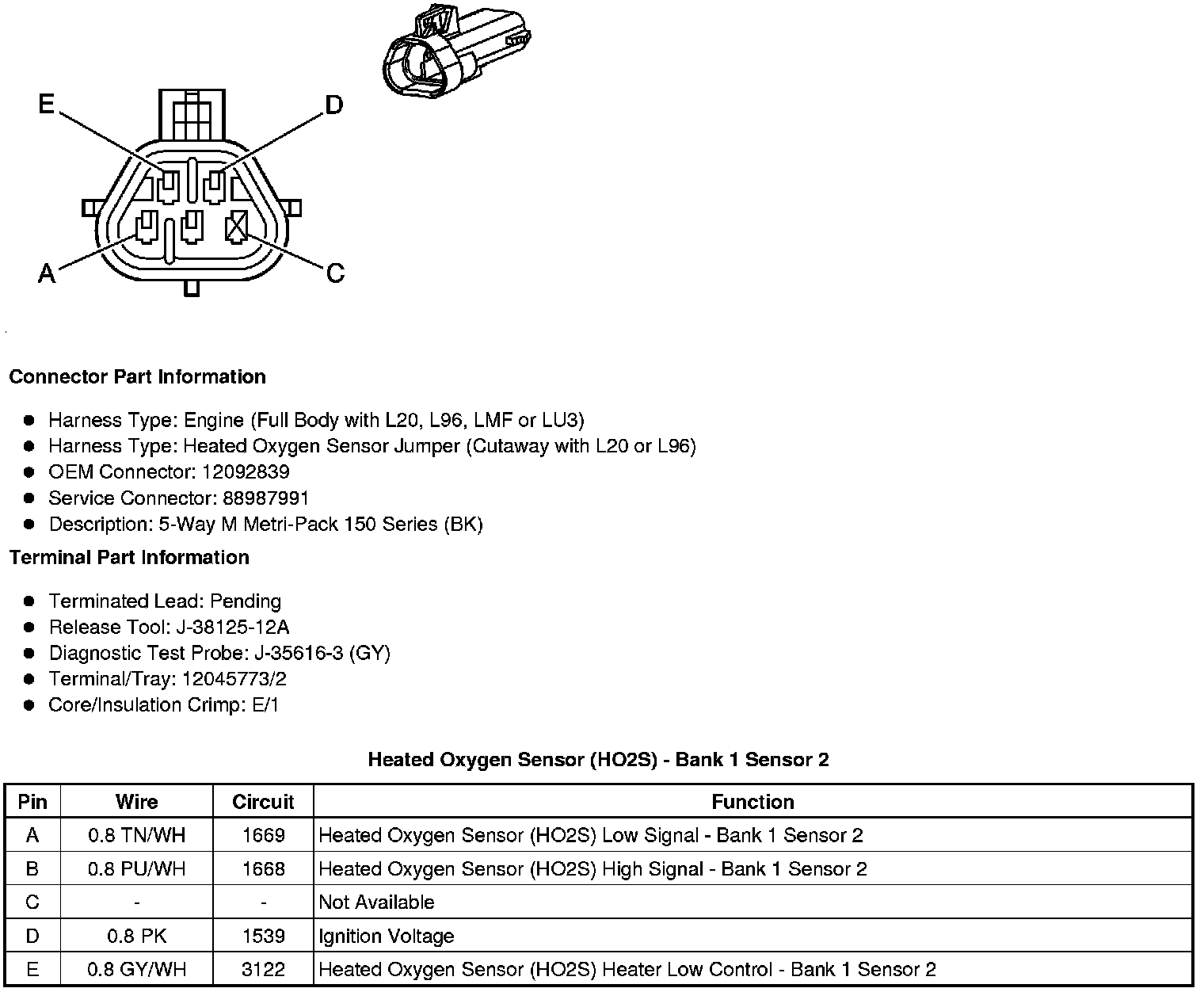 Heated Oxygen Sensor (HO2S) - Bank 2 Sensor 1 (Gas except Cutaway with LC8 or L96)