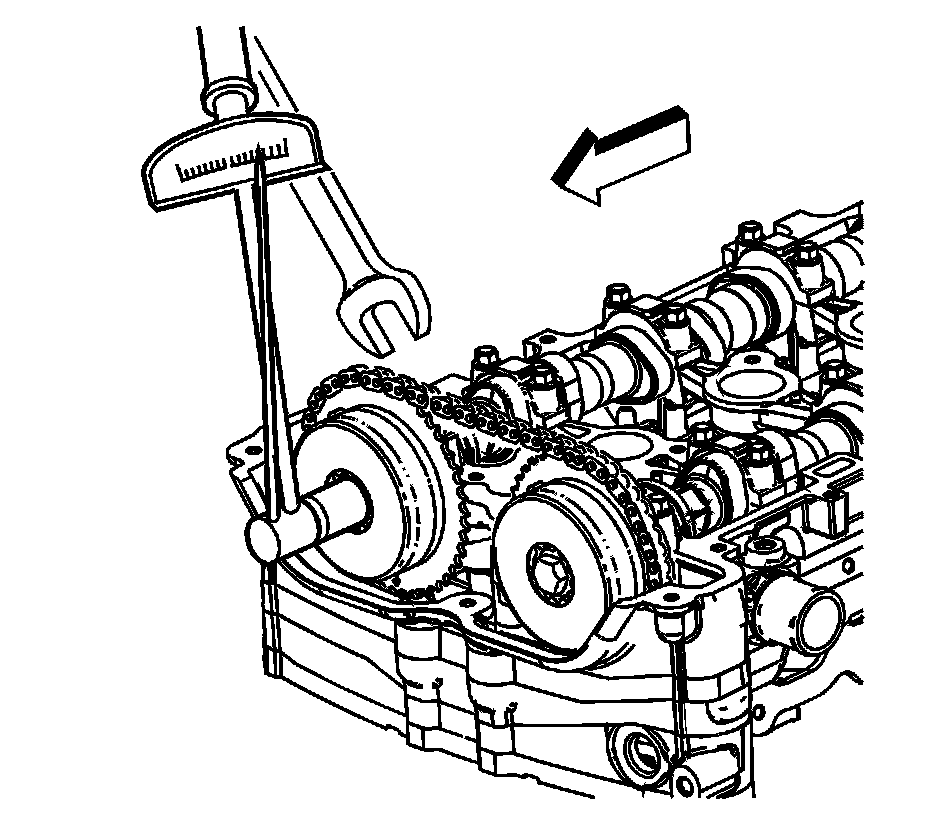 12. Rotate the crankshaft clockwise to remove all chain slack. Do not rotate the intake camshaft.