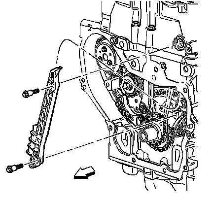 19. Install the fixed timing chain guide and bolts. Tighten the fixed timing chain guide bolts to 12 Nm (106 lb in).