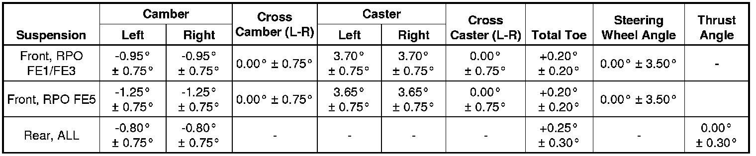 Wheel Alignment Specifications
