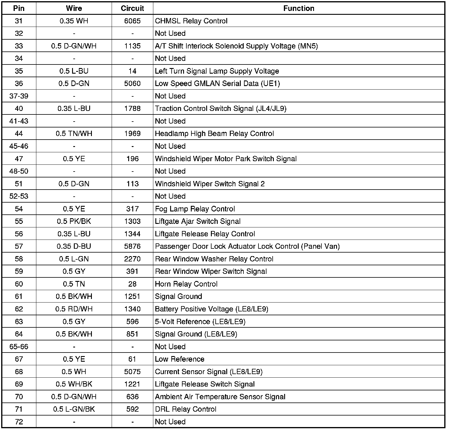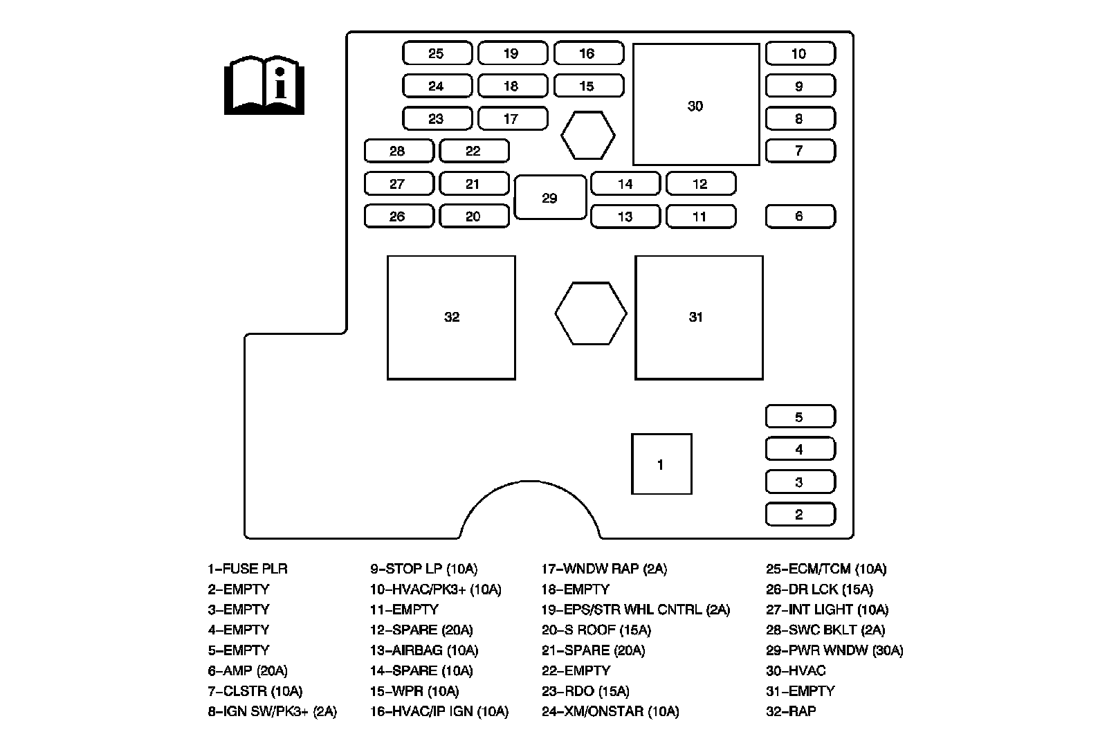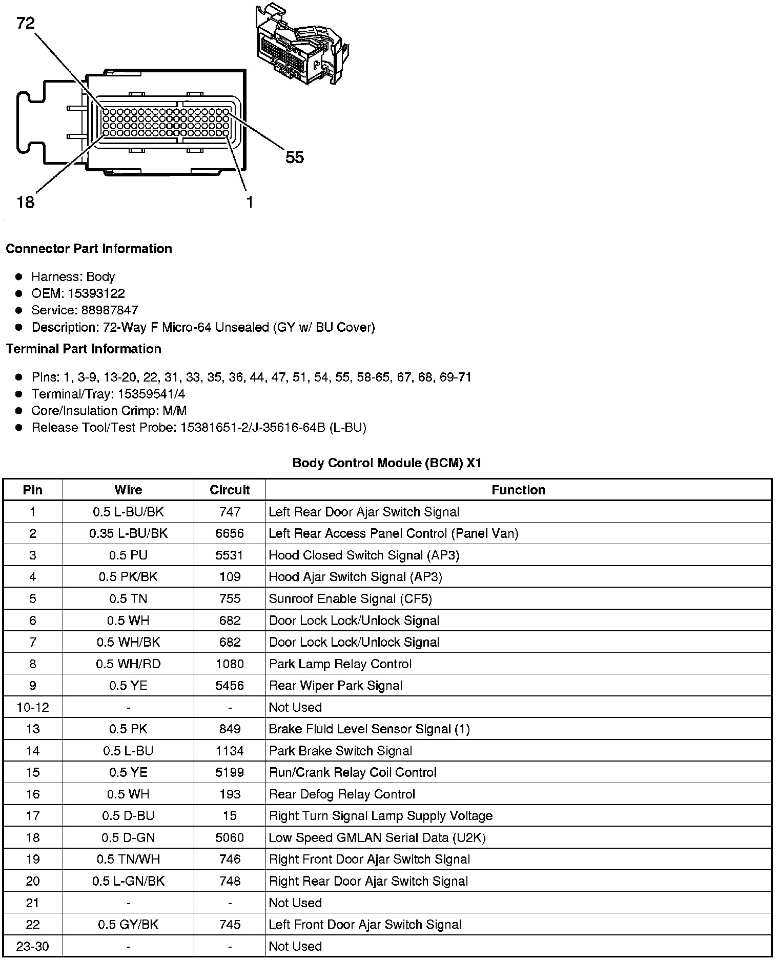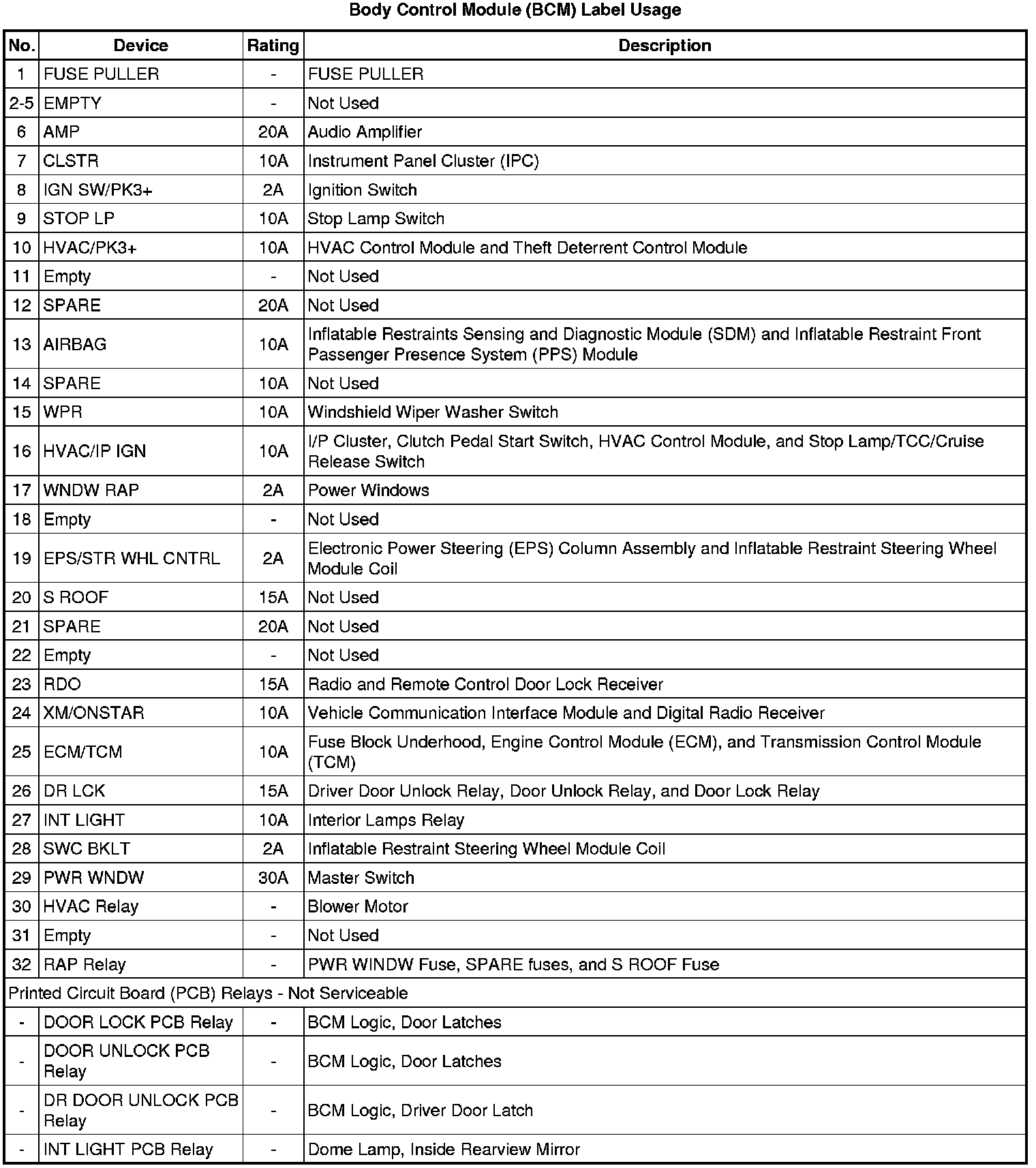 Home >> Chevrolet >> 2011 >> HHR L4-2.2L >> Repair and Diagnosis >> Power and Ground Distribution >> Fuse >> Application and ID >> Body Control Module (BCM)