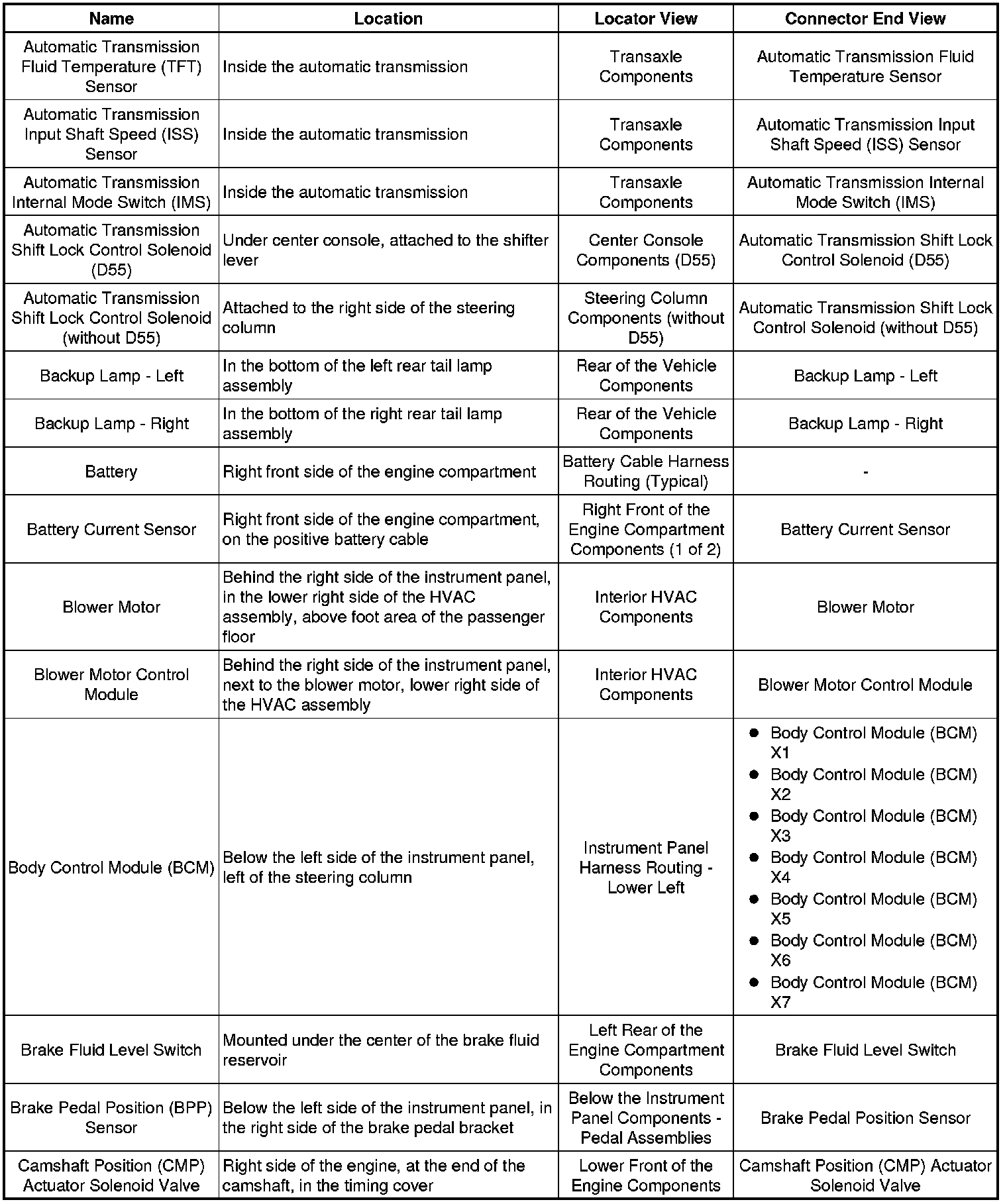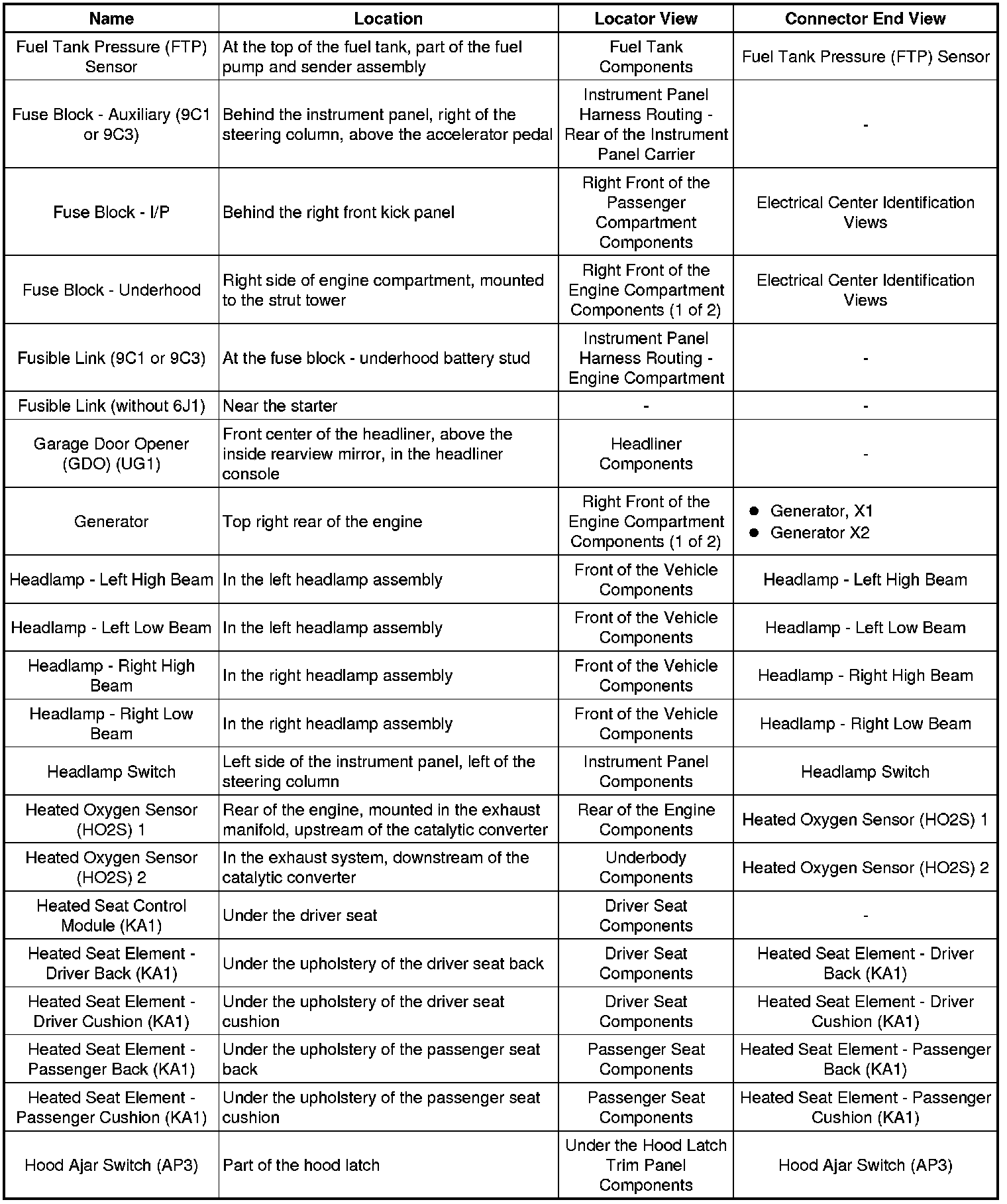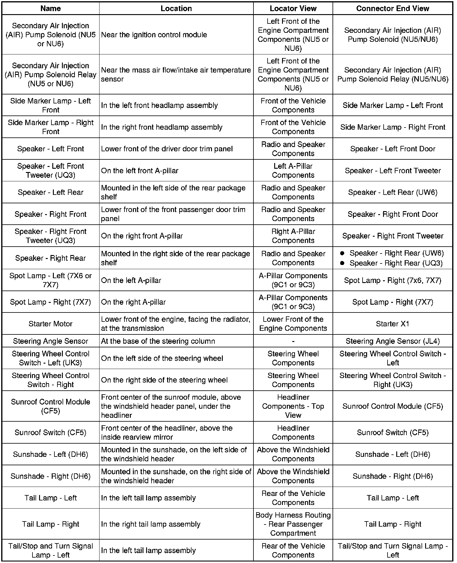 Master Electrical Component List
