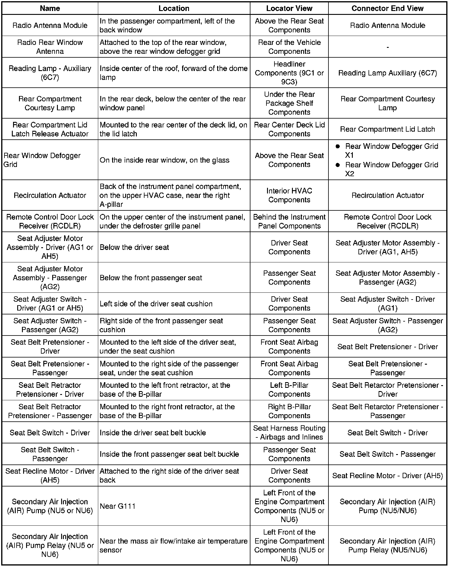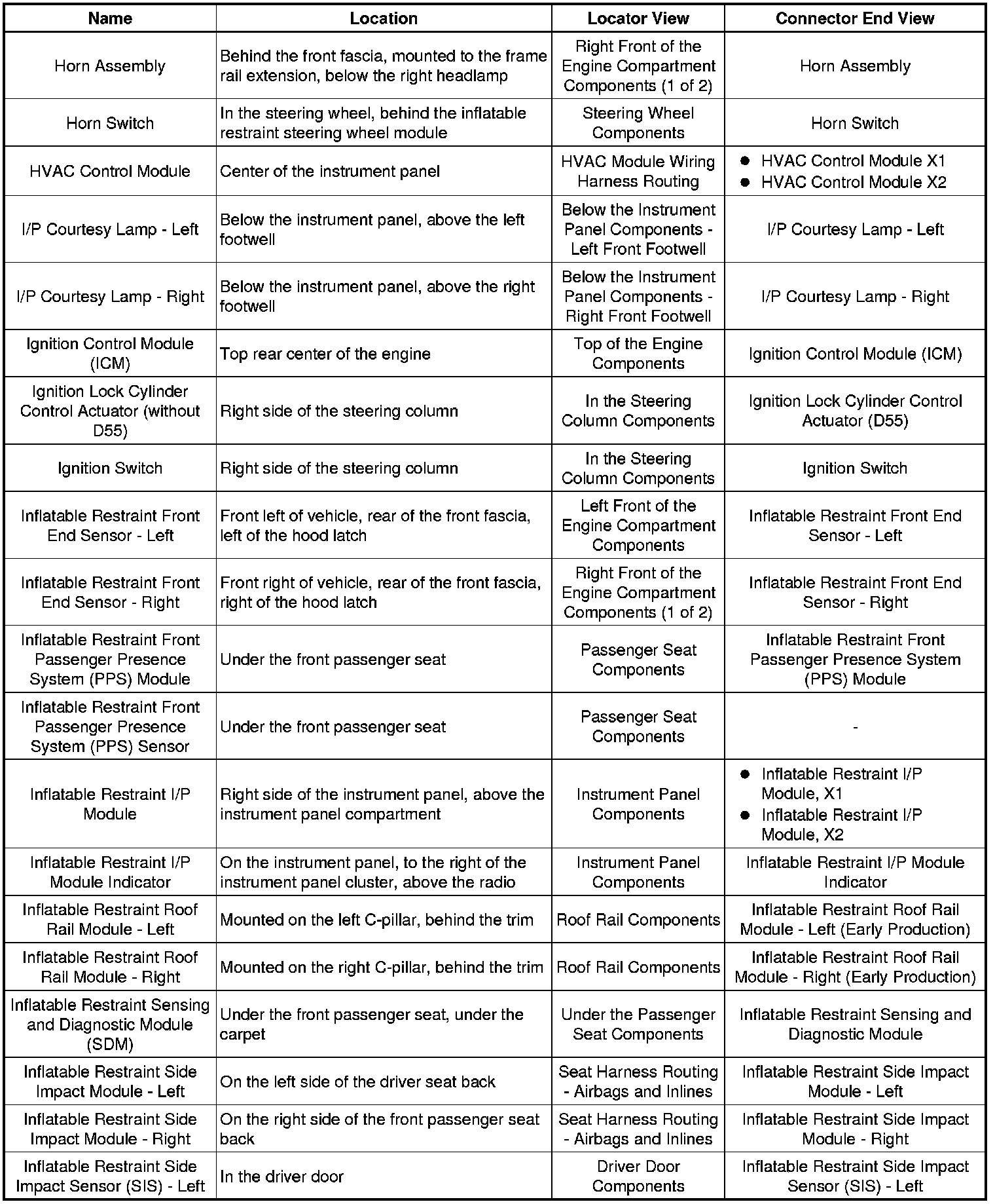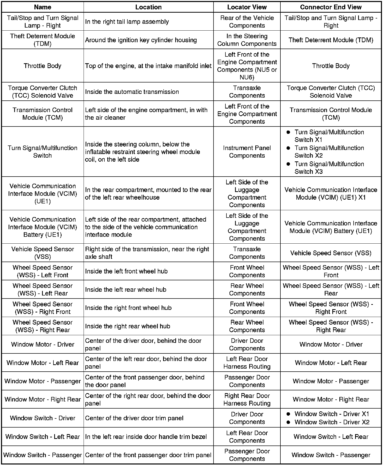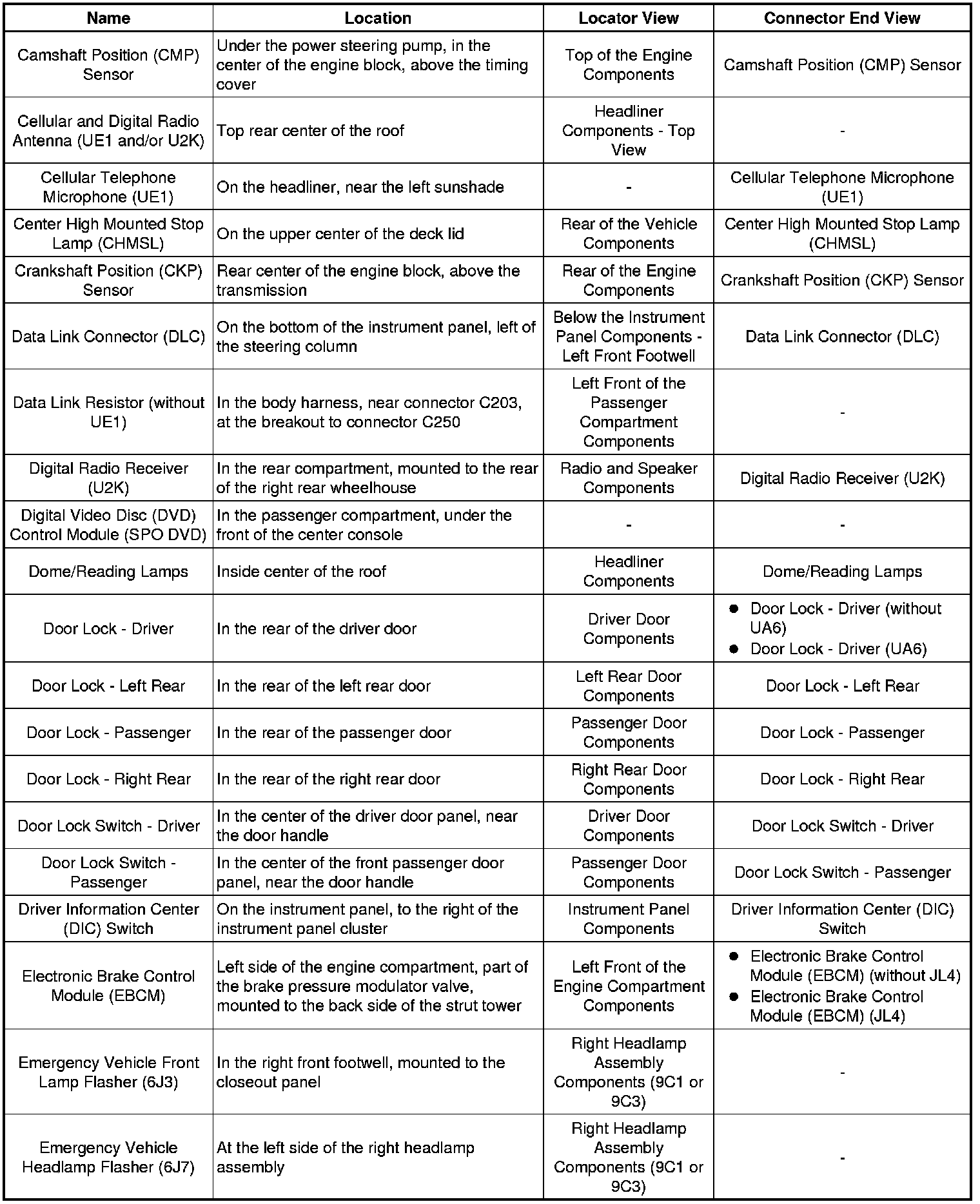 Master Electrical Component List