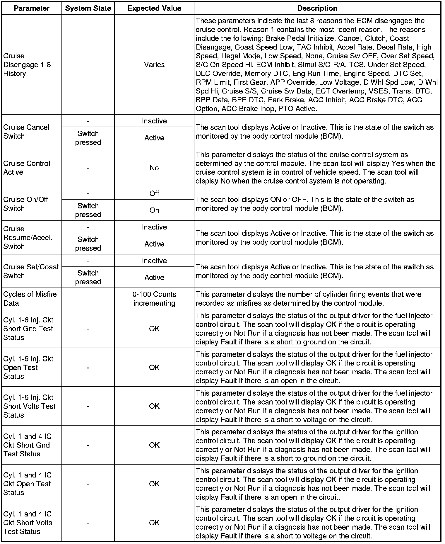 The Engine Control Module Scan Tool Data List contains all engine-related parameters that are available on the scan tool. The list is arranged in alphabetical order. A given parameter may appear in any one of the data lists, and in some cases may appear more than once, or in more than one data list in order to group certain related parameters together.