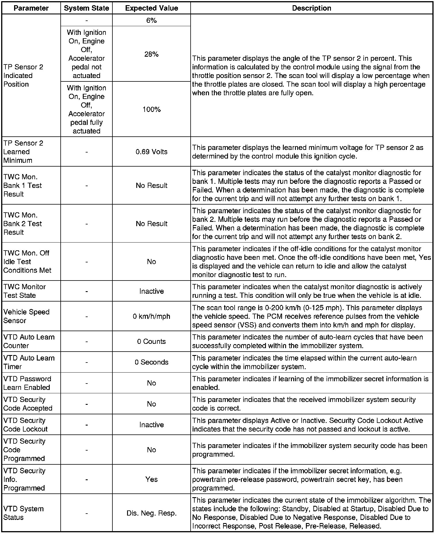 Only the parameters listed below are referenced in this service manual for use in diagnosis. If all values are within the typical range described below, refer to Symptoms - Engine Controls (Symptoms - Engine Controls) for diagnosis.