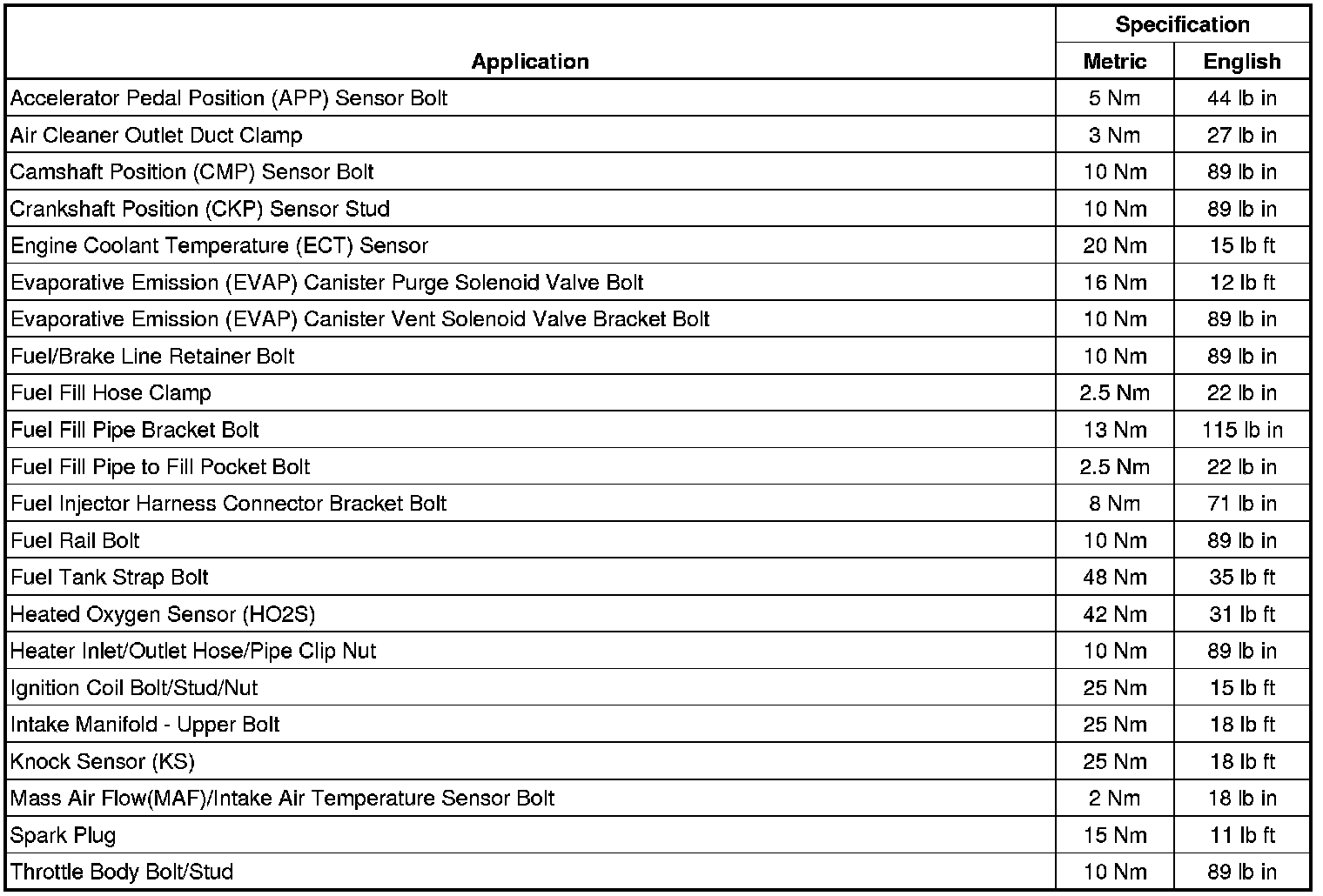Fastener Tightening Specifications