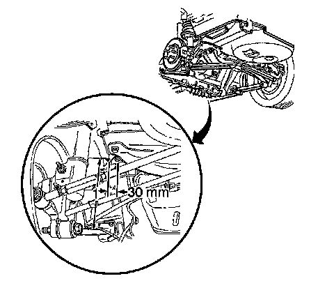 4. The D height is measured from a point 30 mm (1.1 in) outboard of the rear brake hose bracket bolt centerline to the bolt centerline of the trailing arm to the knuckle attachment.