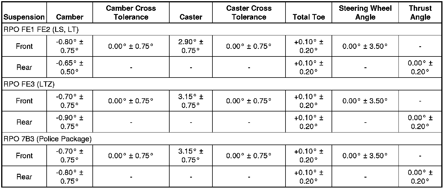Wheel Alignment Specifications