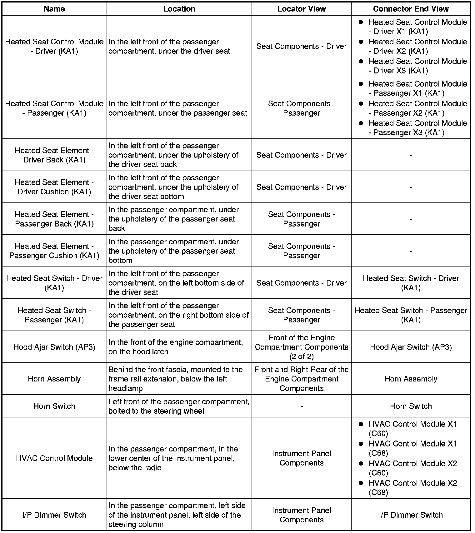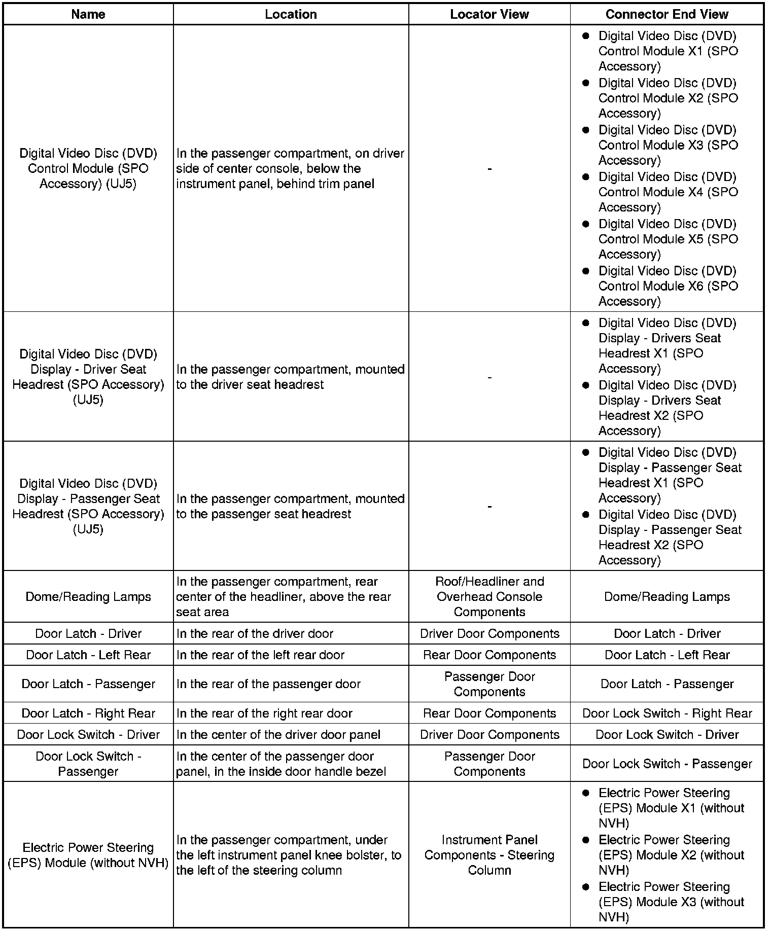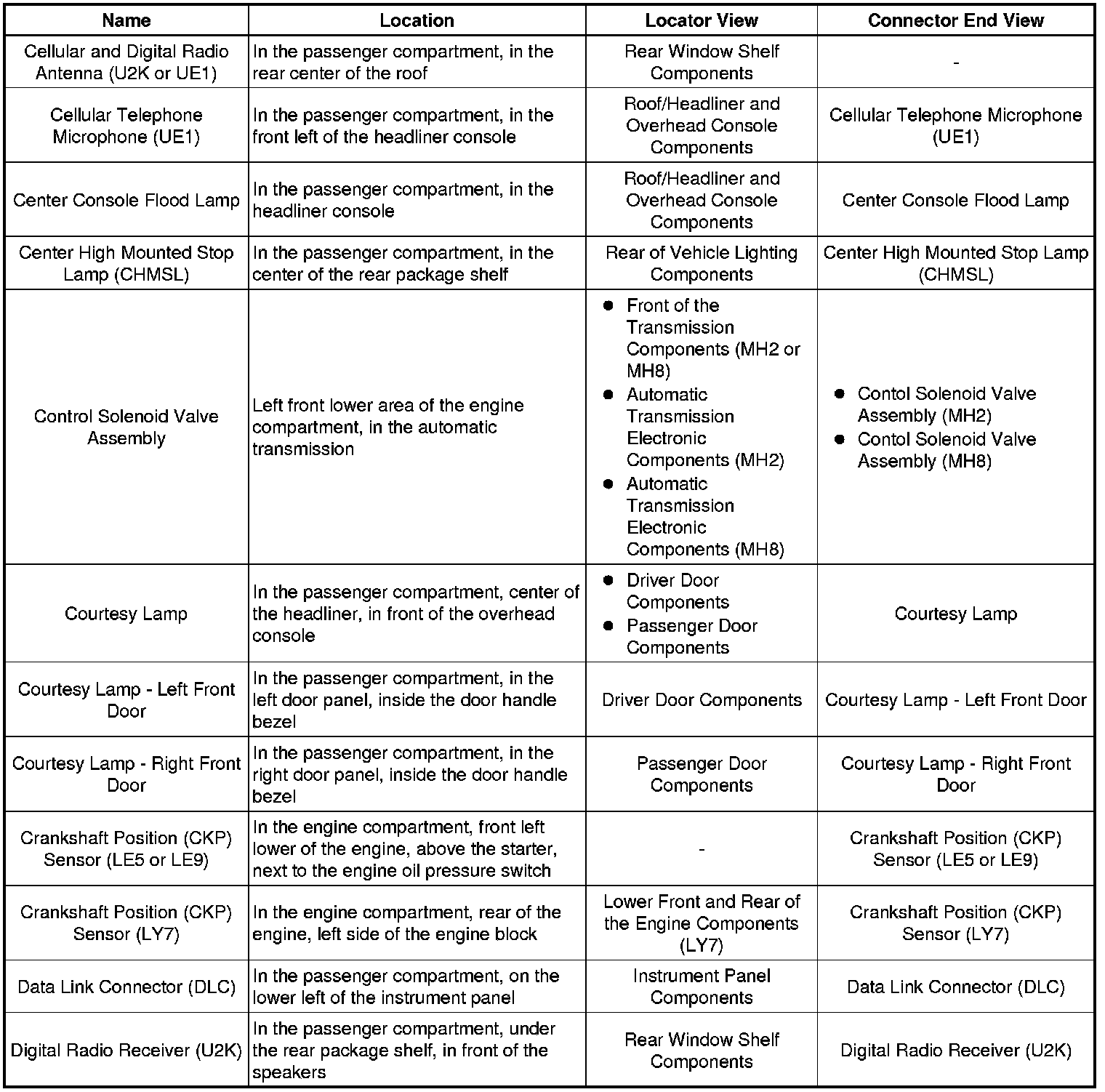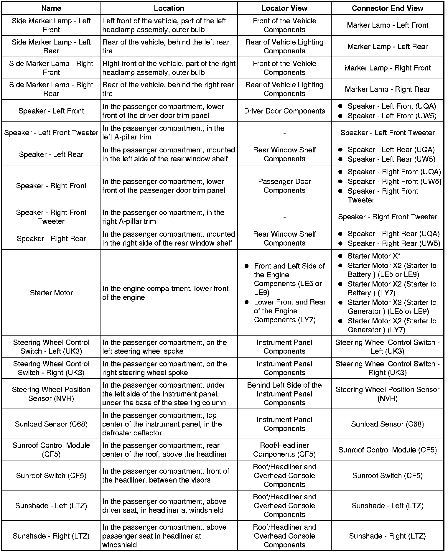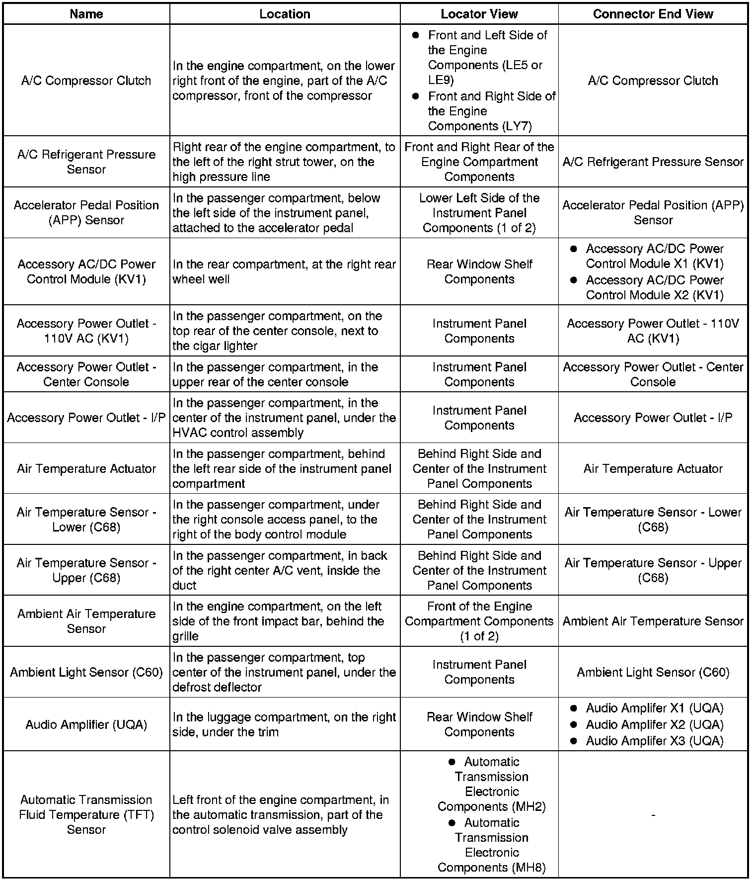 Master Electrical Component List