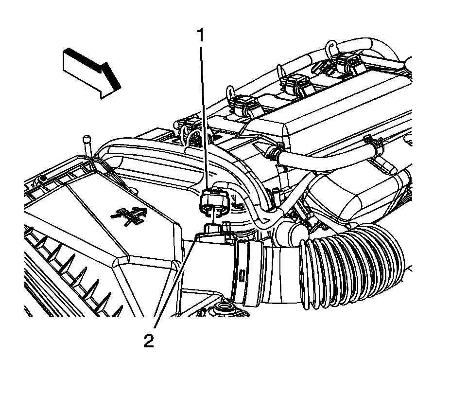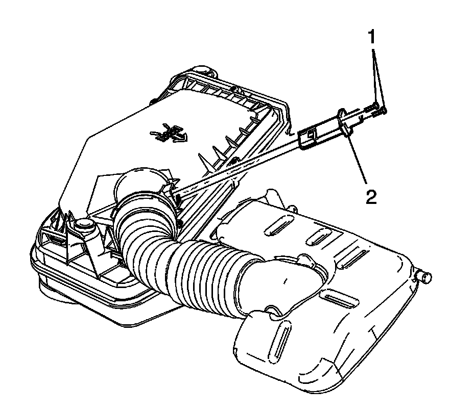 1. Disconnect the engine wiring harness electrical connector (1) from the mass air flow (MAF)/intake air temperature (IAT) sensor (2).