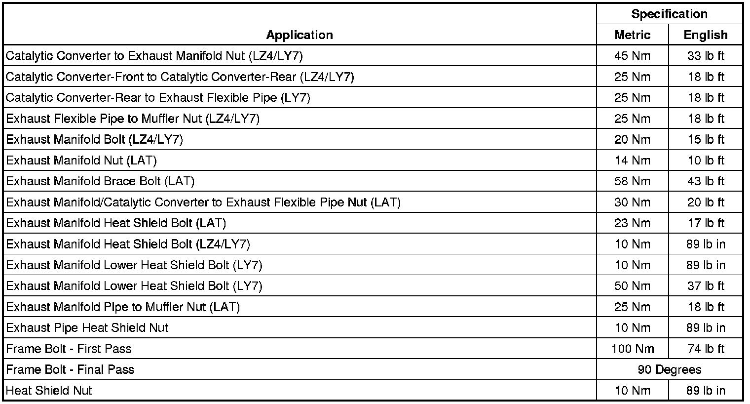 Fastener Tightening Specifications