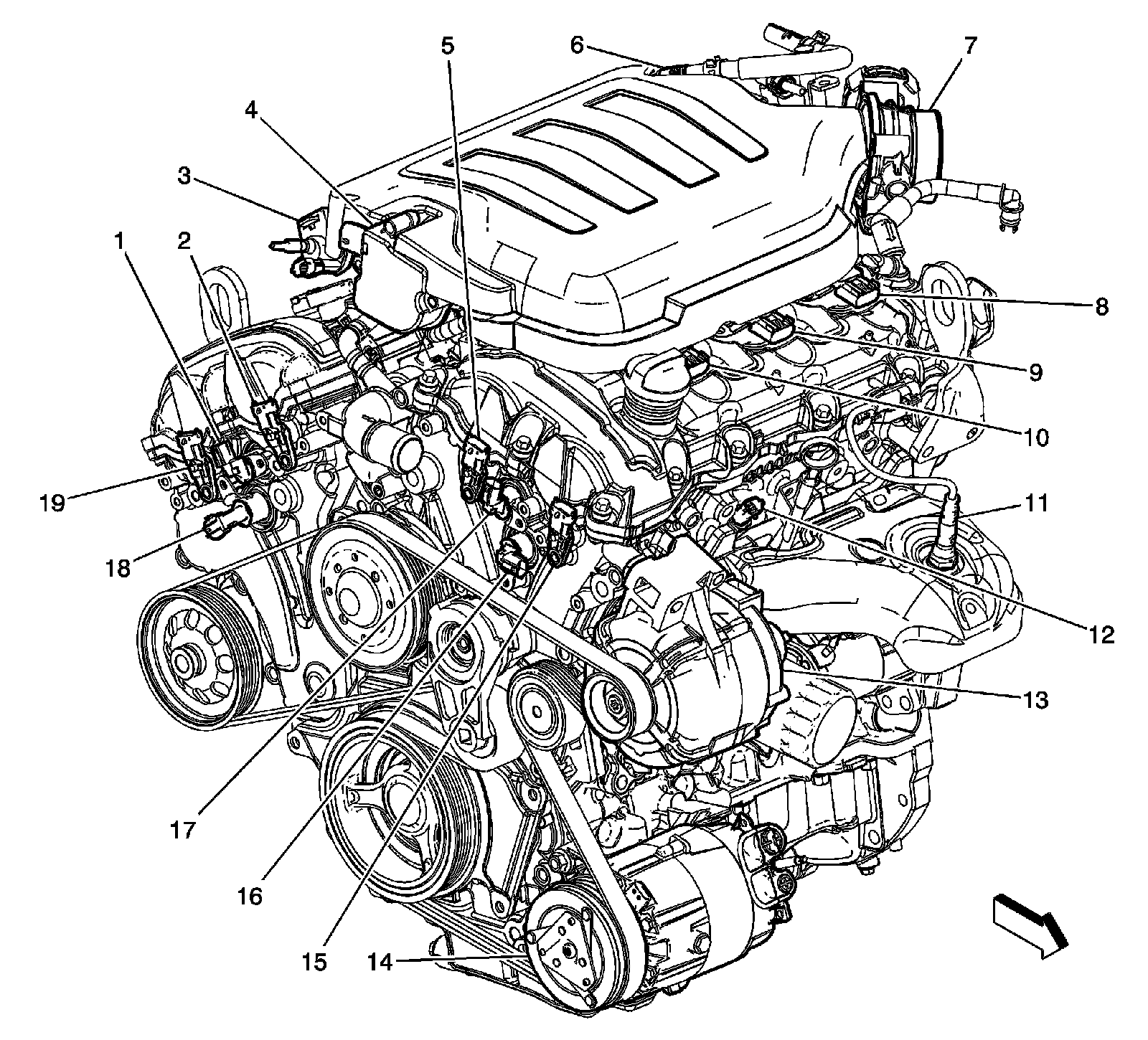 Front and Right Side of the Engine Components (LY7)