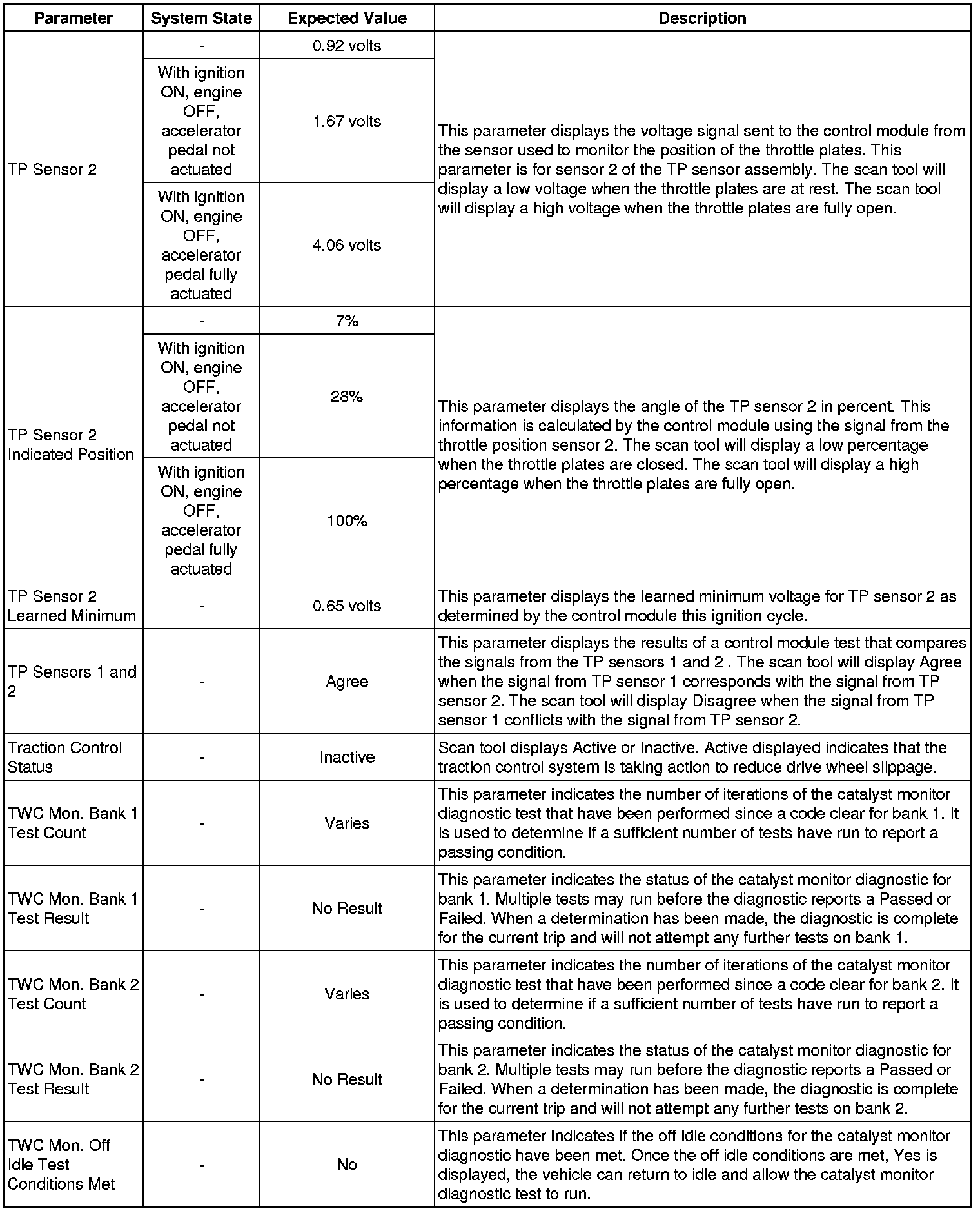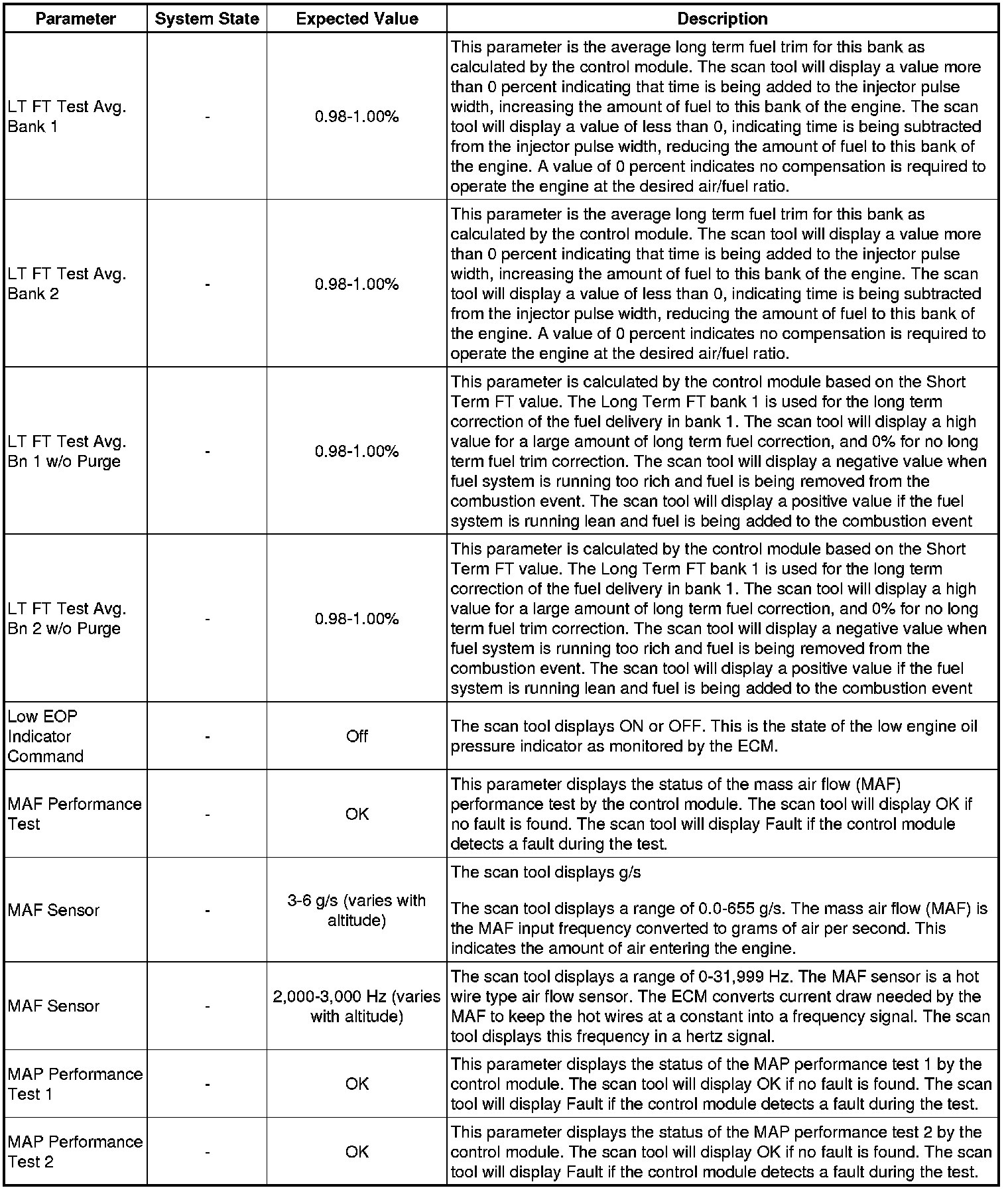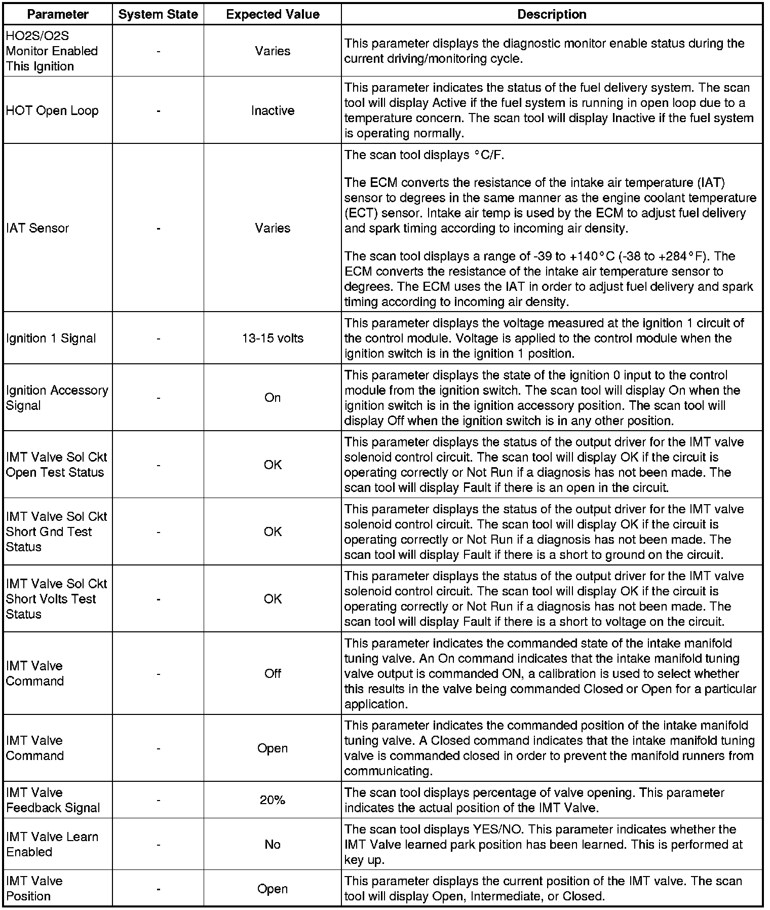 Only the parameters listed below are referenced in this service manual for use in diagnosis. If all values are within the typical range described below, refer to Symptoms - Engine Controls (Symptoms - Engine Controls) for diagnosis.