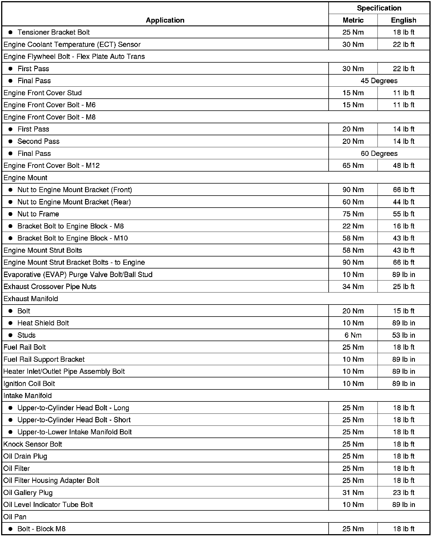 Fastener Tightening Specifications