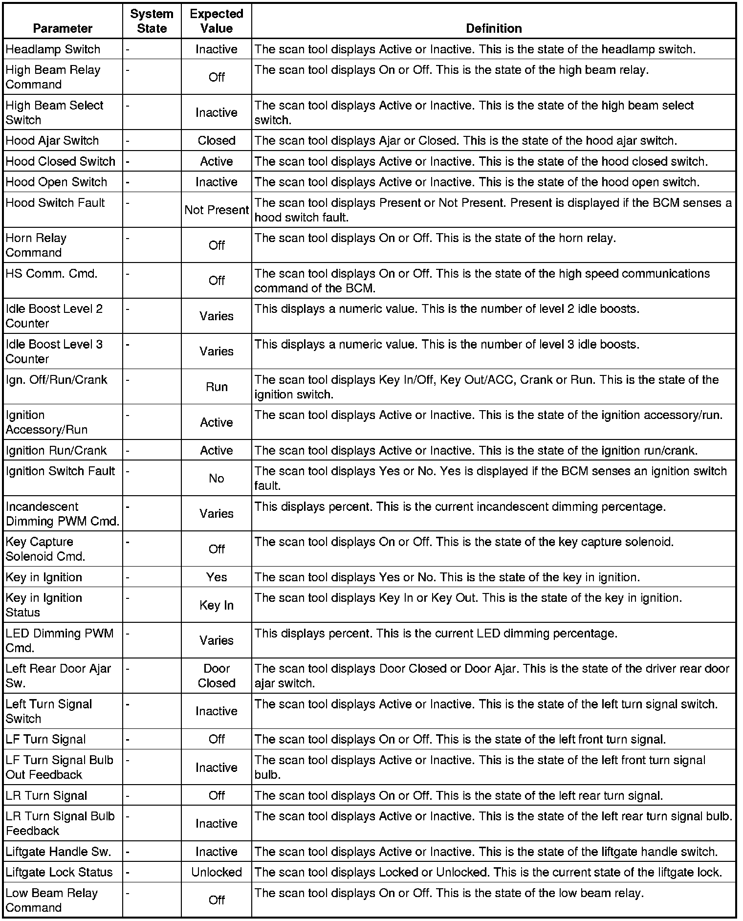 Body Control Module Scan Tool Information