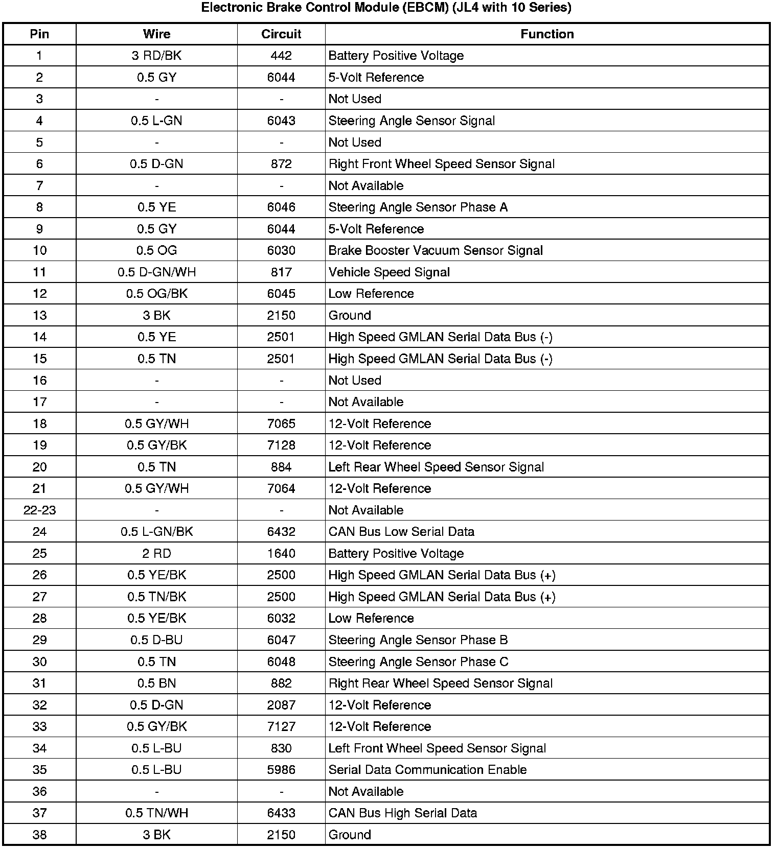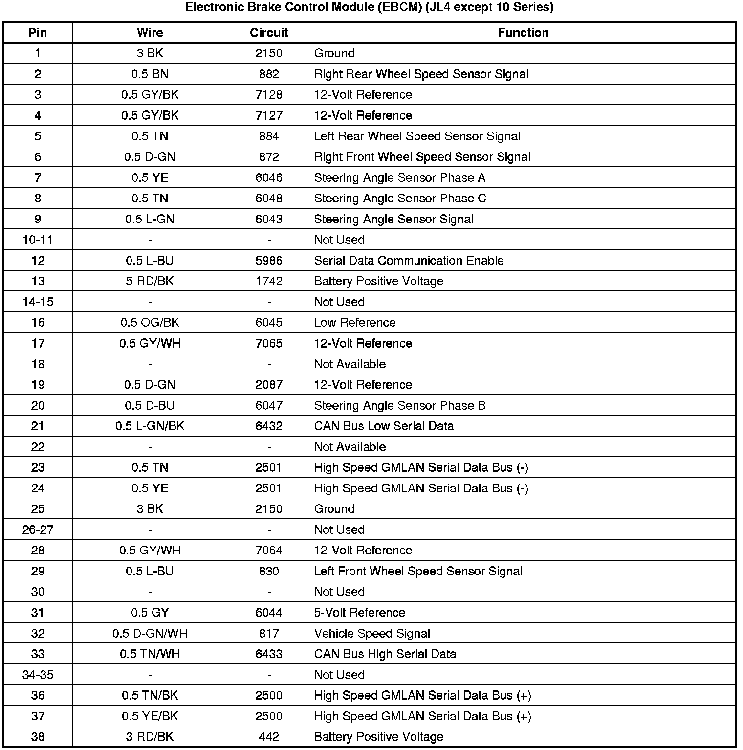 Electronic Brake Control Module (EBCM) (JL4 except 10 Series)