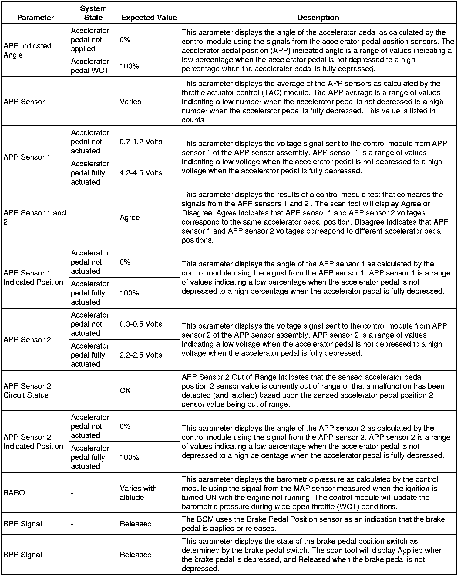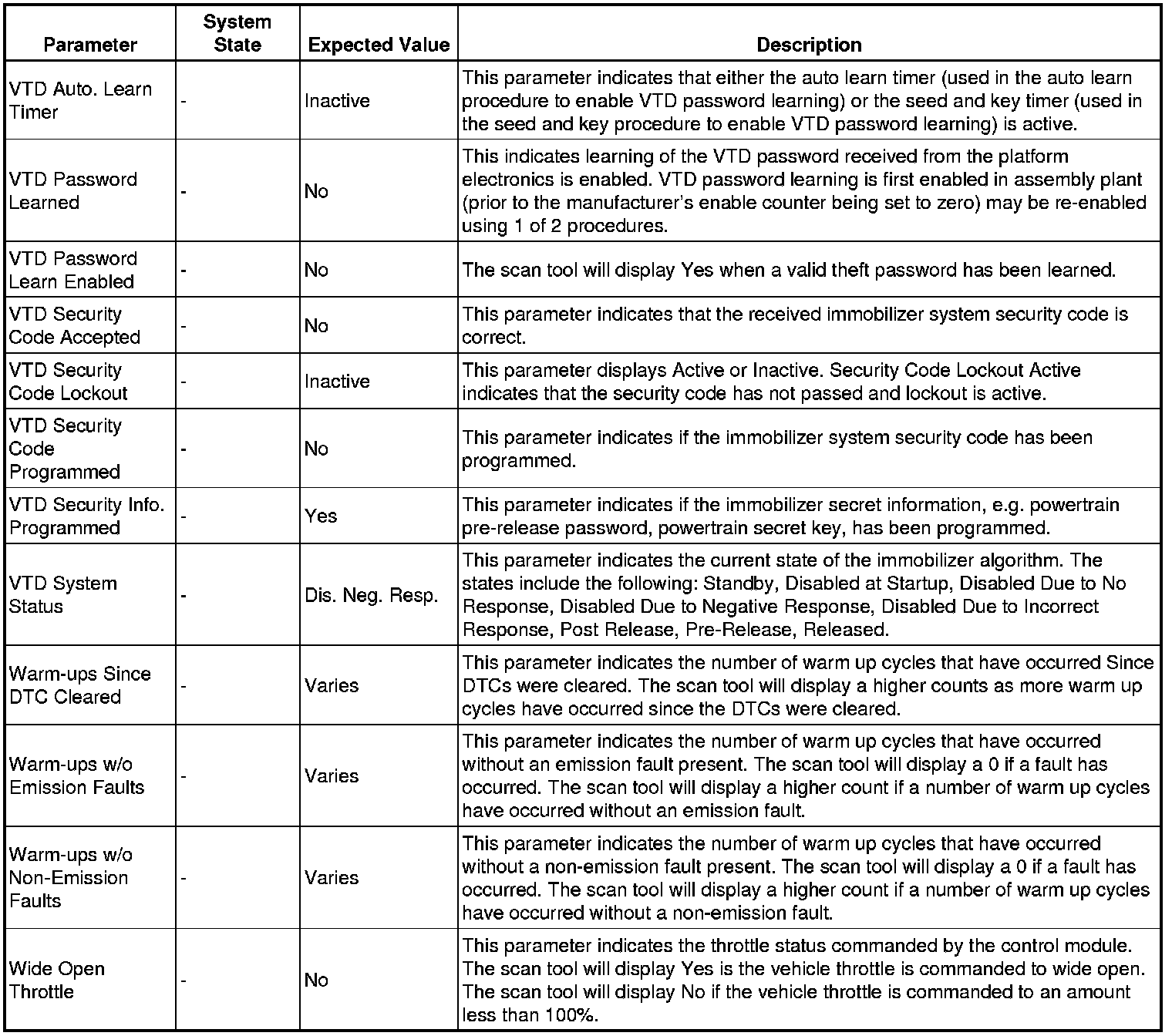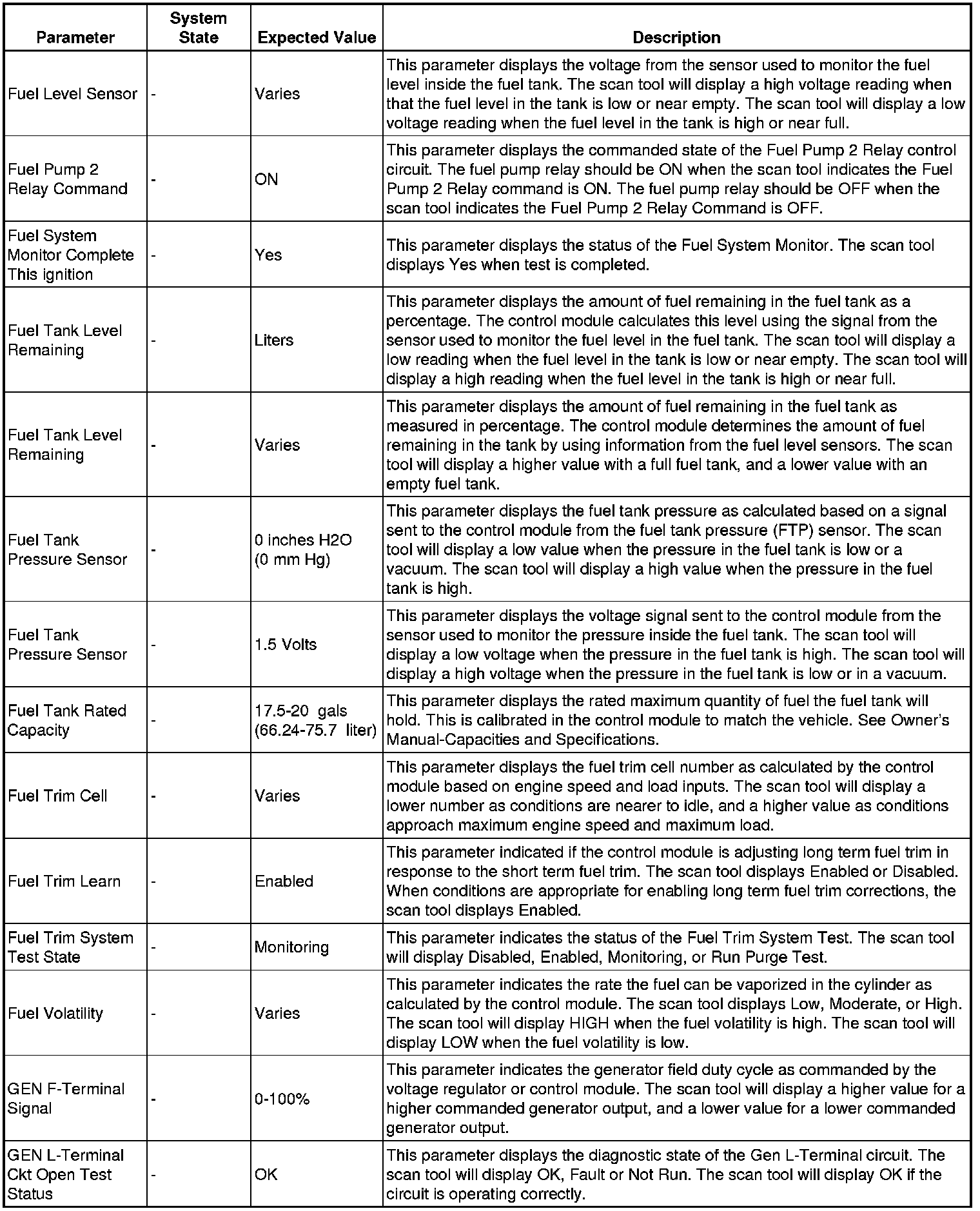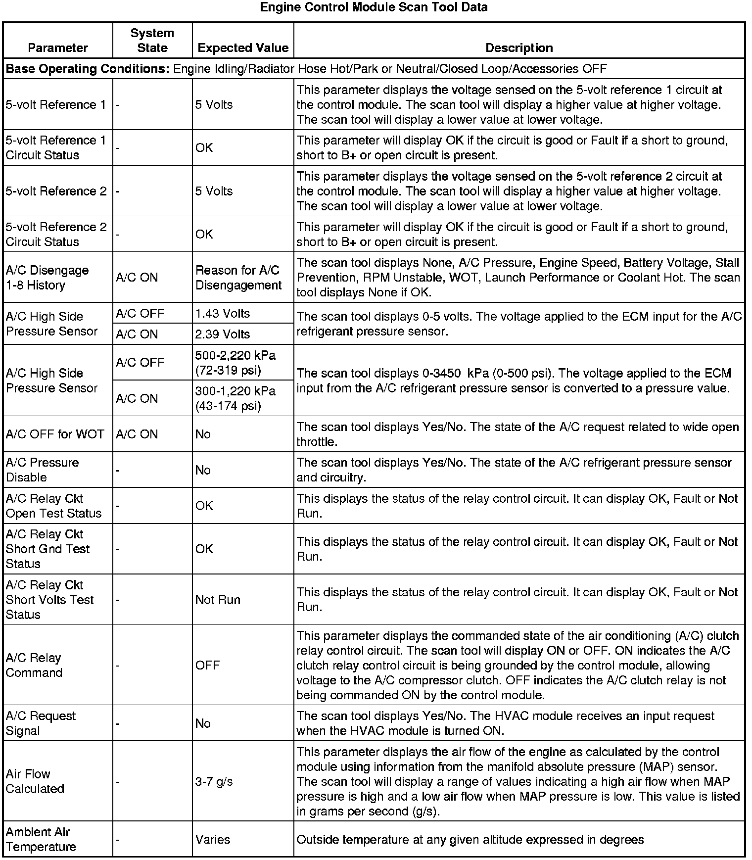 The Engine Control Module Scan Tool Data List contains all engine-related parameters that are available on the scan tool. The list is arranged in alphabetical order. A given parameter may appear in any one of the data lists, and in some cases may appear more than once, or in more than one data list in order to group certain related parameters together.