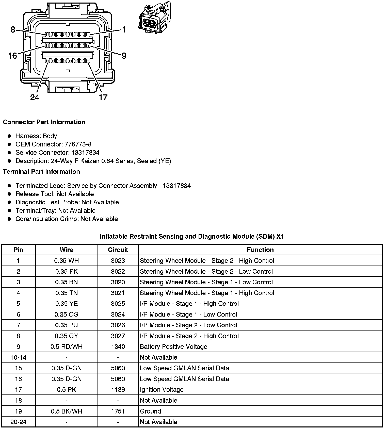 Inflatable Restraint Sensing and Diagnostic Module (SDM) X1