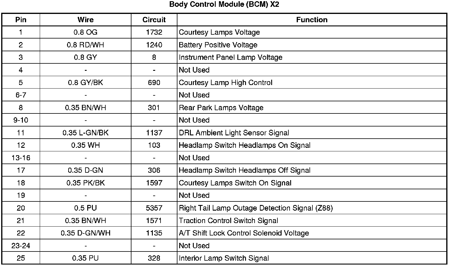 Home >> Chevrolet >> 2011 >> Traverse FWD V6-3.6L >> Repair and Diagnosis >> Diagrams >> Connector Views >> Body Control Module