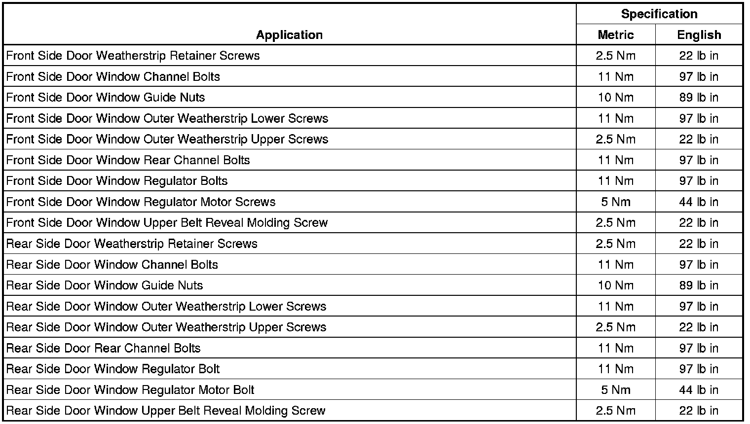Fastener Tightening Specifications