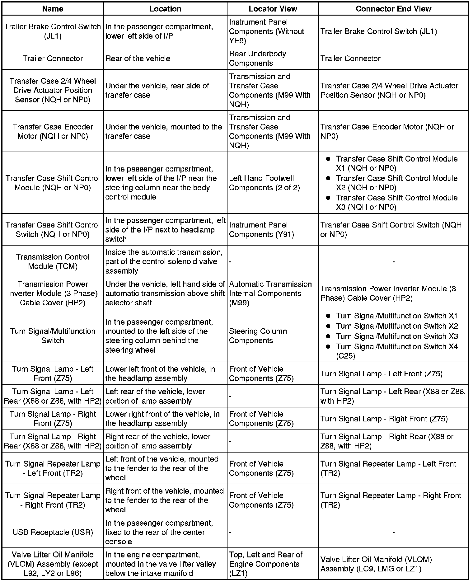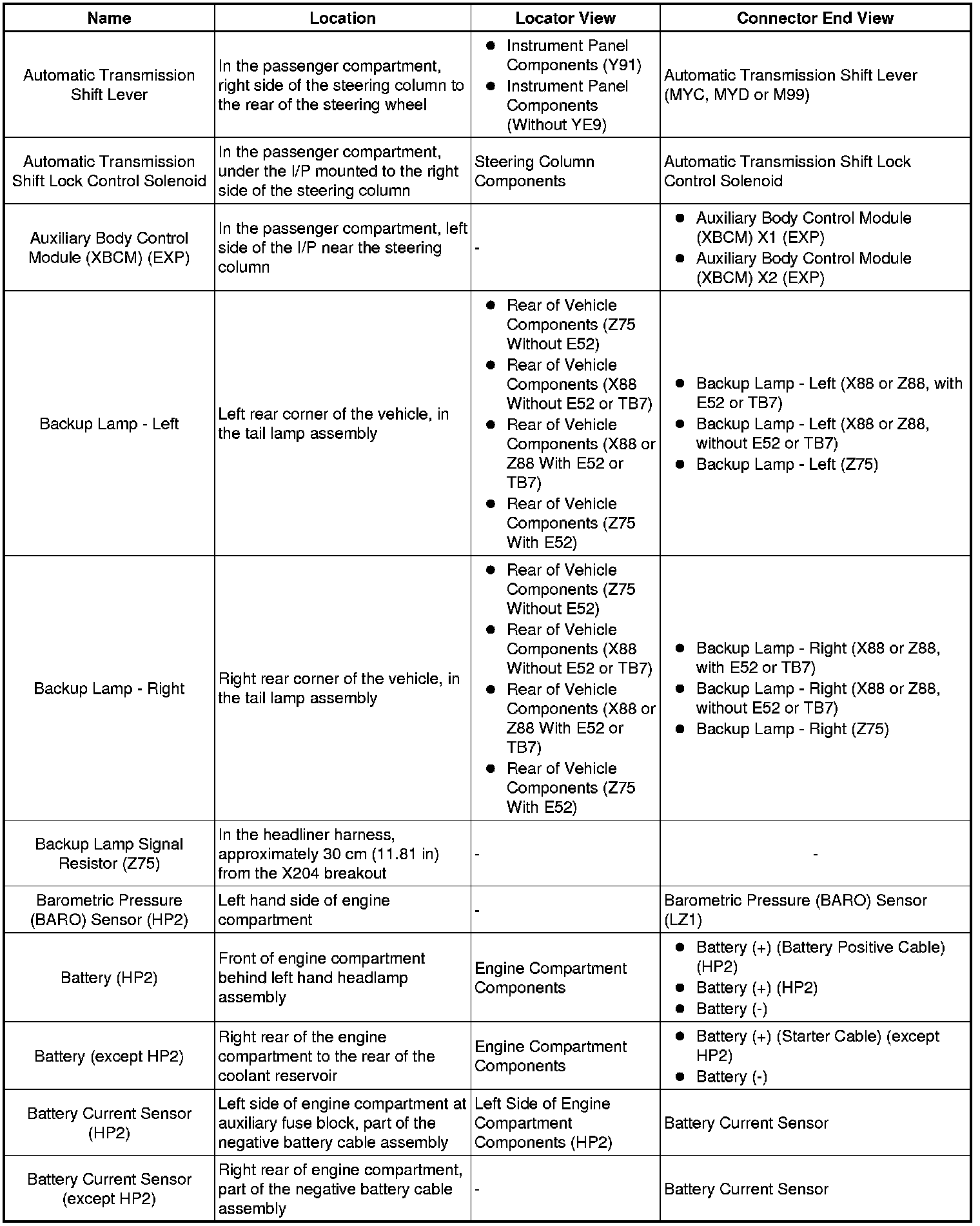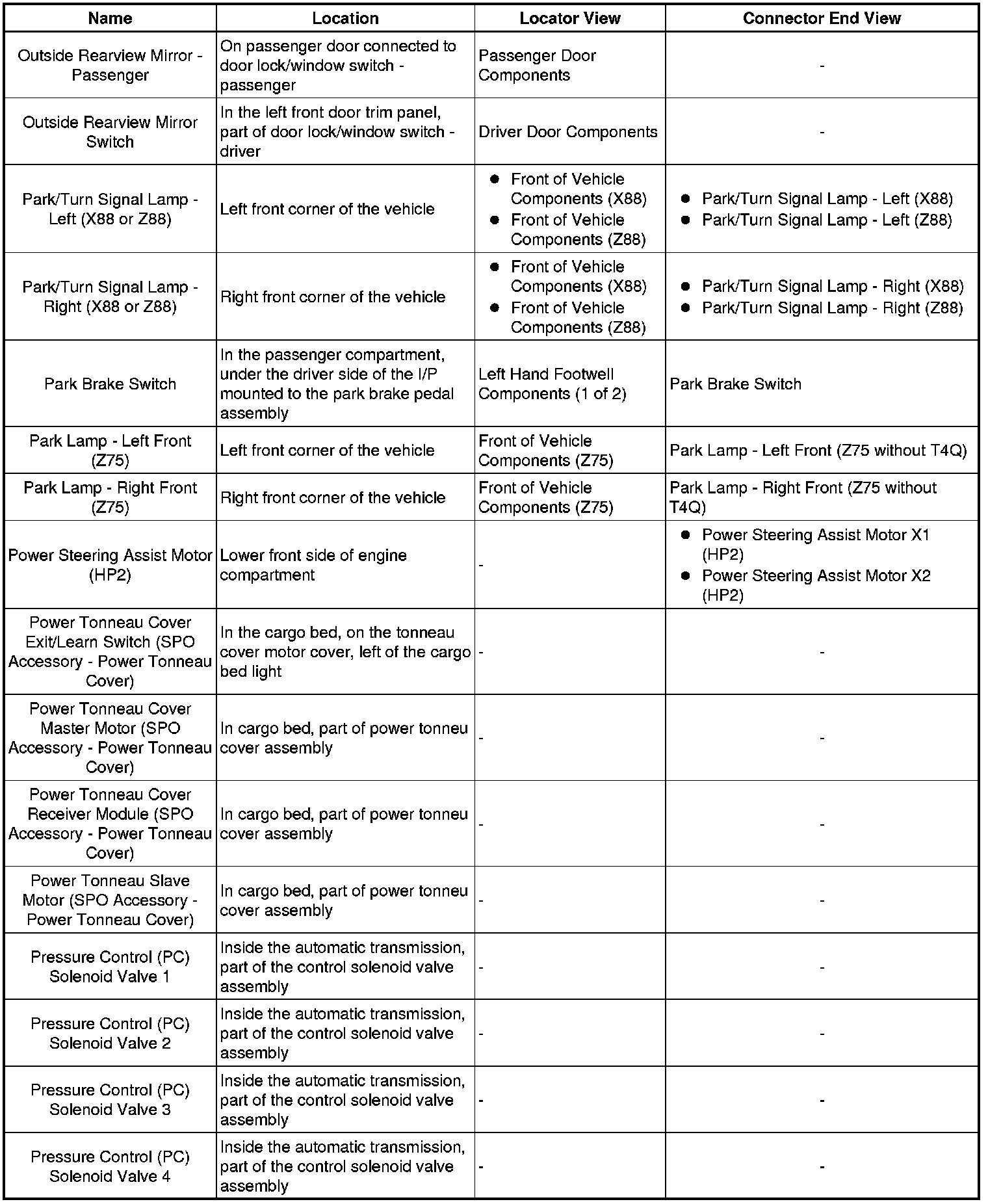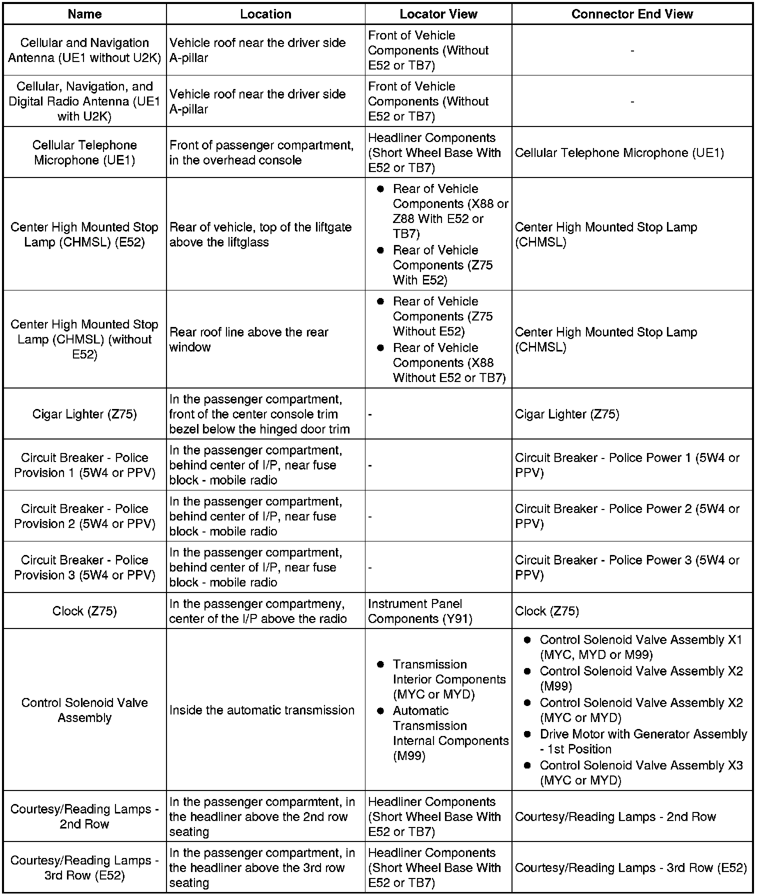Master Electrical Component List