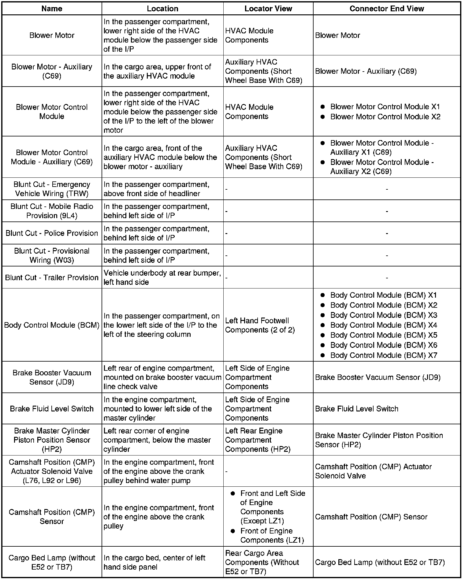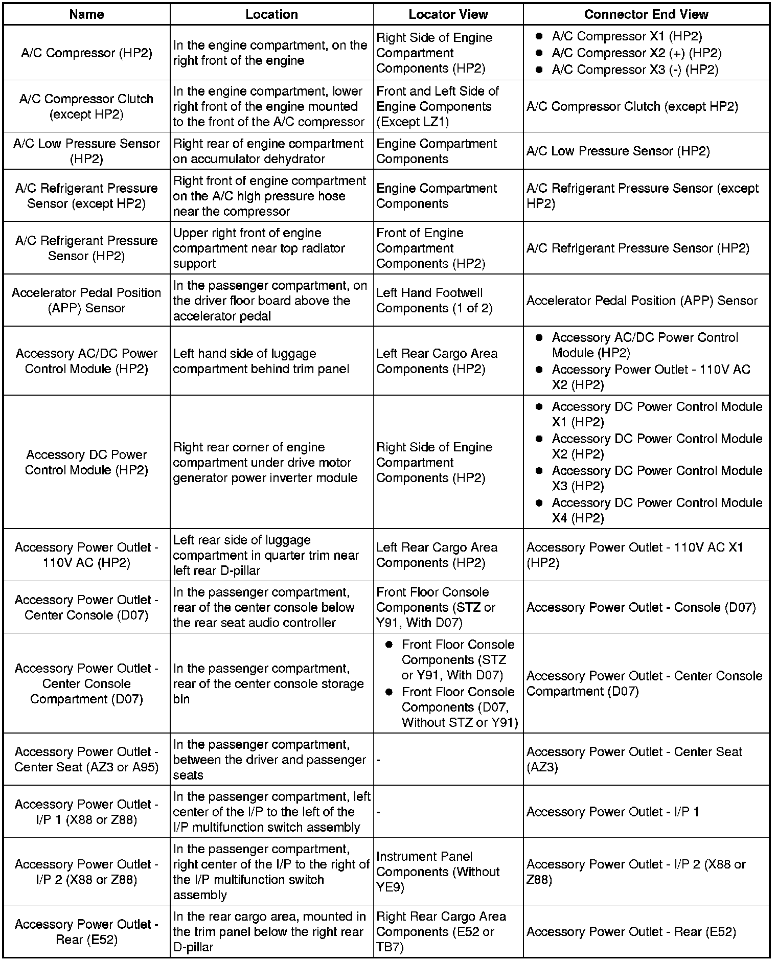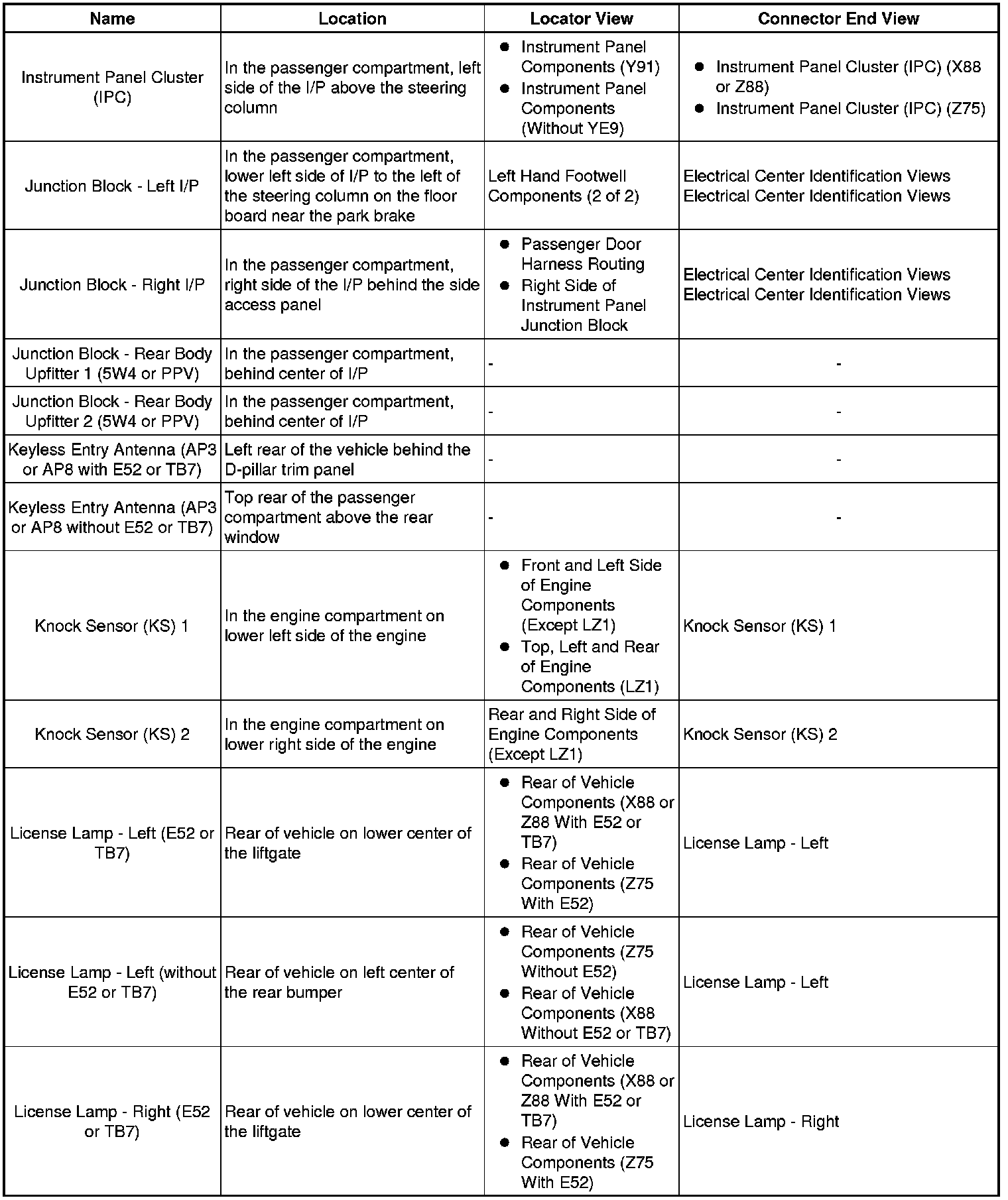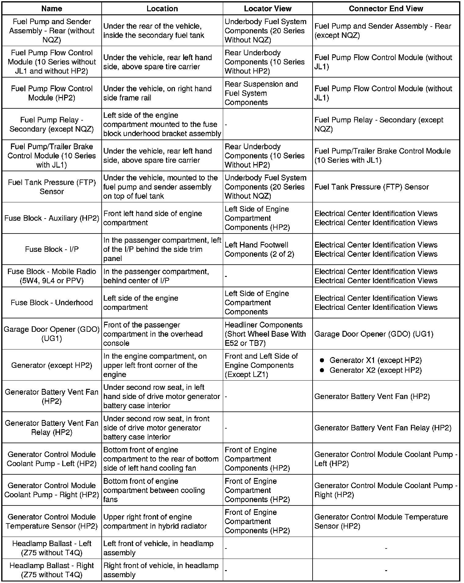 Master Electrical Component List